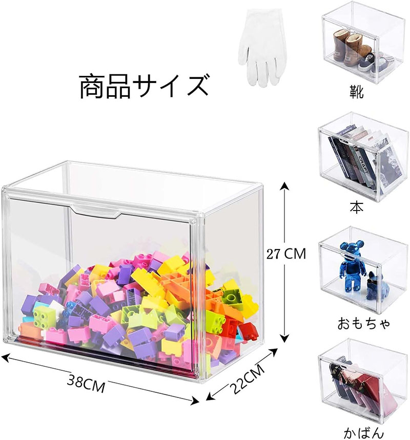 透明の収納ケース3つ 積み重ね式 プラ 3個入り 2個入り 1個入り