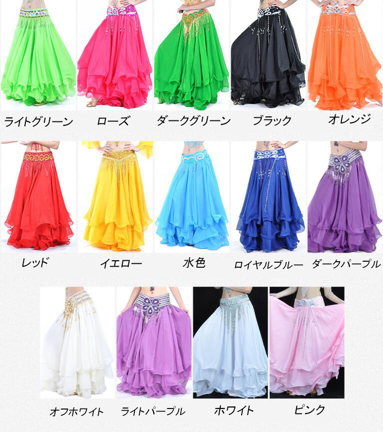 ベリーダンススカート シフォンスカート スポーツ アウトドア 超目玉商品 ライトグリーン ダークグリーン ローズ レッド オレンジ オフホワイト ピンク ホワイト ブラック イエロー ライトパープル ダークパープル 水色 ロイヤルブルー