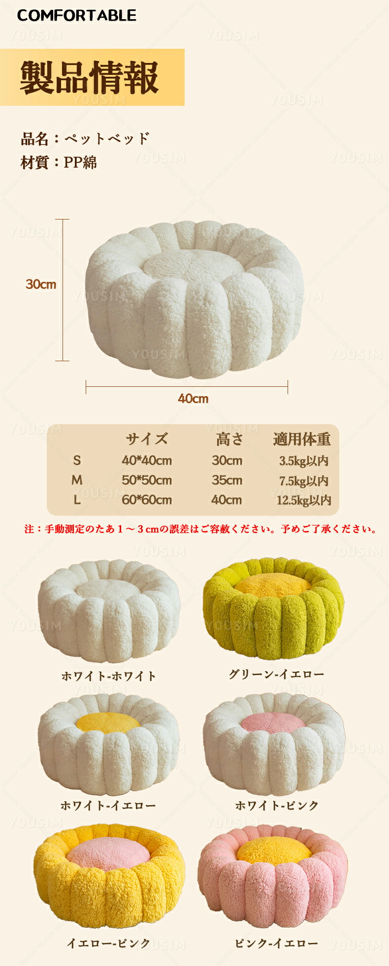ペットハウス 丸型 花型 ペットベッド ペット ペットグッズ 人気 ホワイト――ホワイト グリーン――イエロー ホワイト――イエロー ホワイト――ピンク イエロー――ピンク ピンク――イエロー S(直径40cm) M(直径50cm) L(直径60cm)