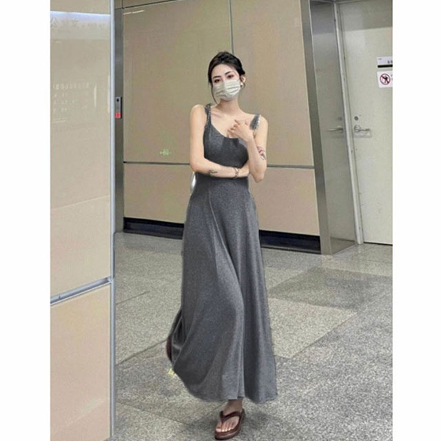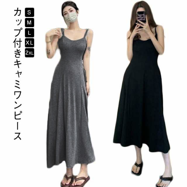カップ付き ワンピース ロング フレア レディースファッション 超目玉商品 ブラック グレー S M L XL 2XL