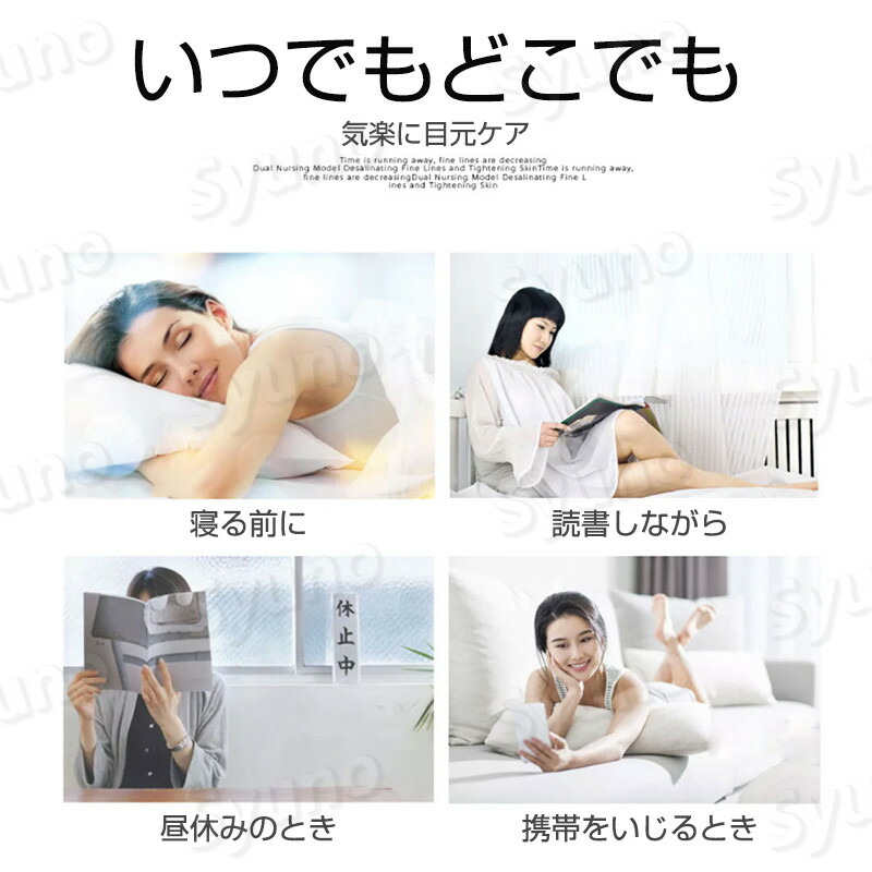 めがね型は両眼をふさがないので、家事や仕事の合間、テレビを見ながら、音楽を聴きながらなど、簡単手軽に目もとエステが楽しめます。