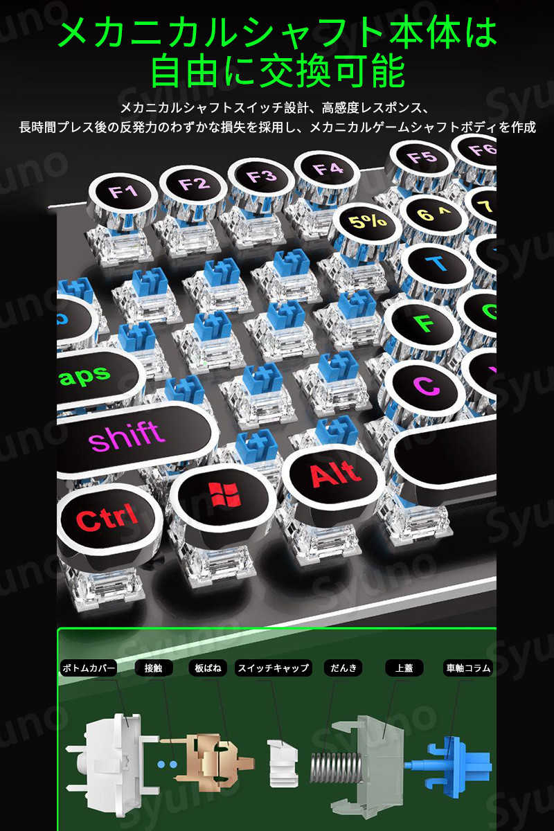 青軸タイプライターデザイン 有線 おし ブラック ホワイト
