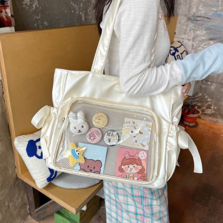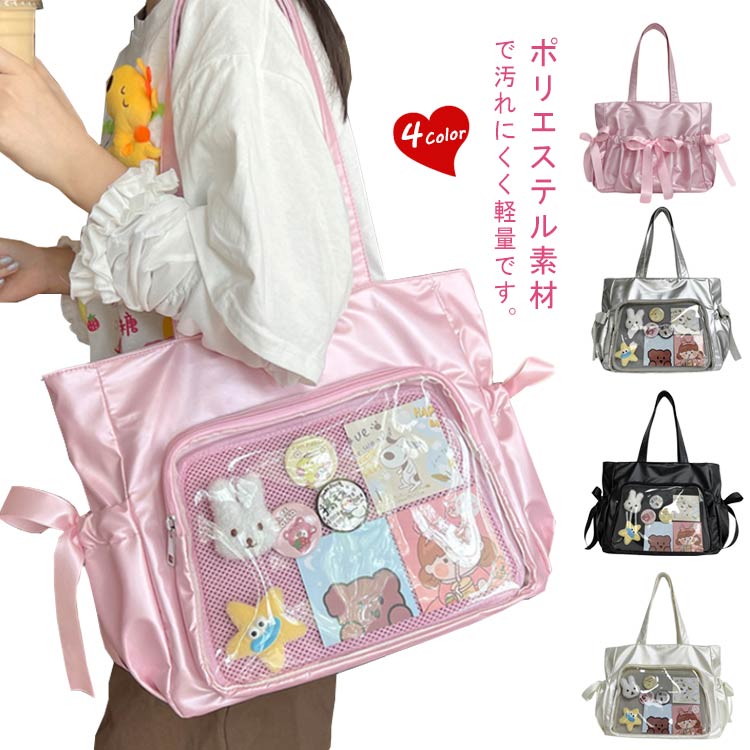 大きめ 缶バッジ 肩掛け ライブ おし バッグ 小物 ブランド雑貨 通販 ブラック ホワイト ピンク シルバー