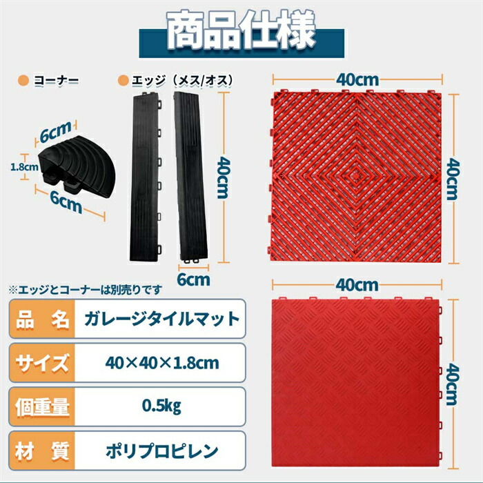 ガレージタイル用 エッジ コーナー ガ コーナー(部品) エッジ(オス) エッジ(メス) グレー ブラック イエロー