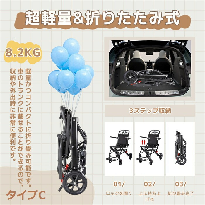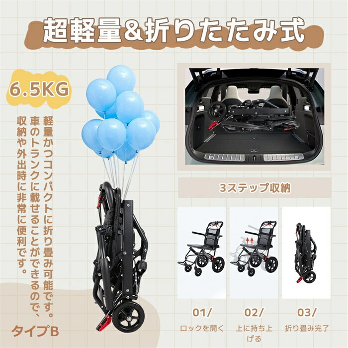 車椅子 折畳み 軽量 コンパクト 介助 タイブB タイブC ホワイト ブラック