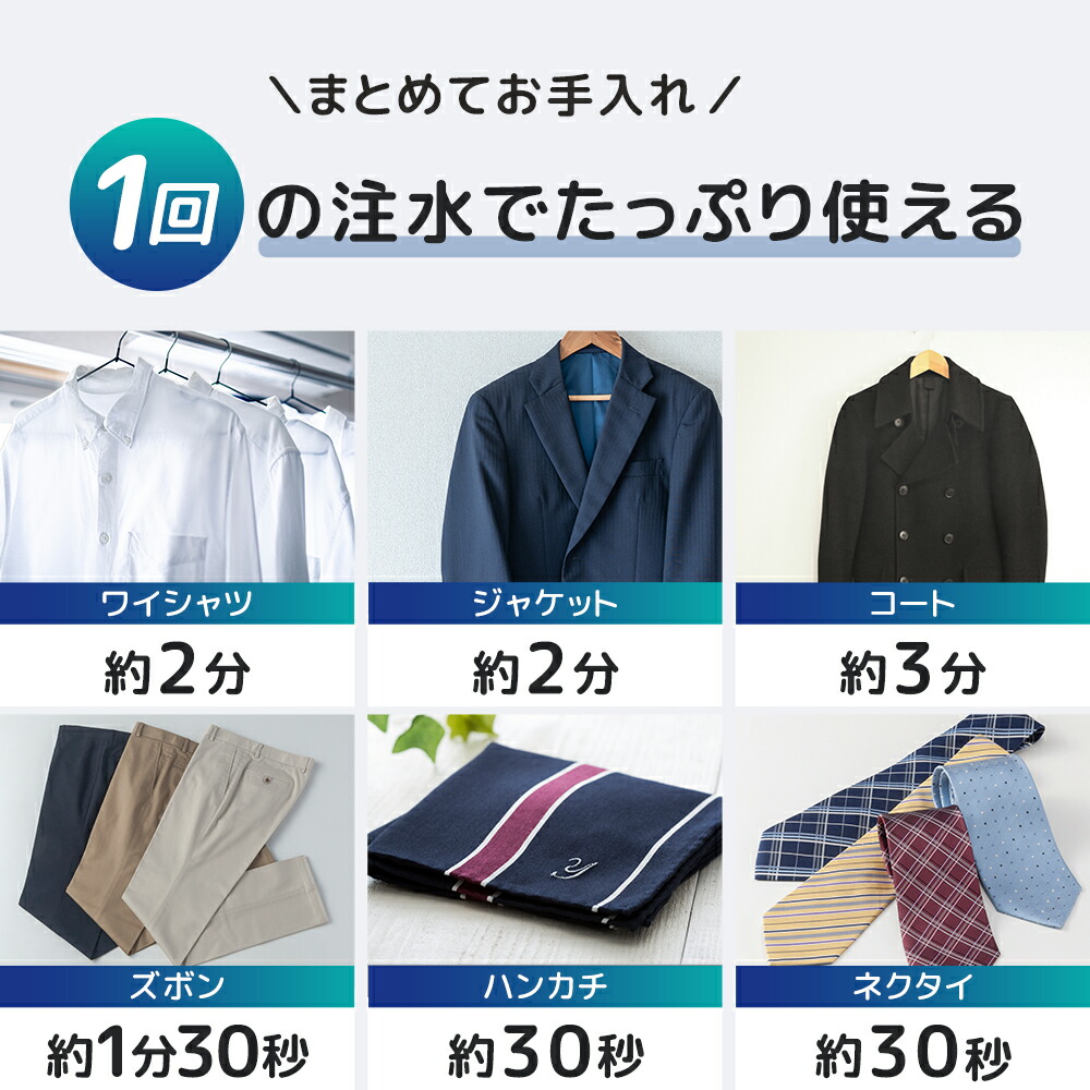 アイロン台を使わずに、短時間で衣類のシワ取り・脱臭ができる衣類スチーマーと蒸気の力で衣類のシワを伸ばすスチームアイロンで利用可能の、小回りのきく2WAYモデル*スチーマーです。ハンガーにかけたままの衣類に蒸気をあてて、シワ取りや脱臭ができるし、圧力を使ってドライアイロンとしてパリッとシワを素早く伸ばせます。スチーム噴射とプレス機能の両方を兼ね備え、多機能&スチーム性能の向上により、ひとり暮らしの男性やおしゃれ着好きの女性、朝の外出前など時間がないときでも手軽にケアできます。忙しい現代人にとってなくてはならないスチームアイロンです。
