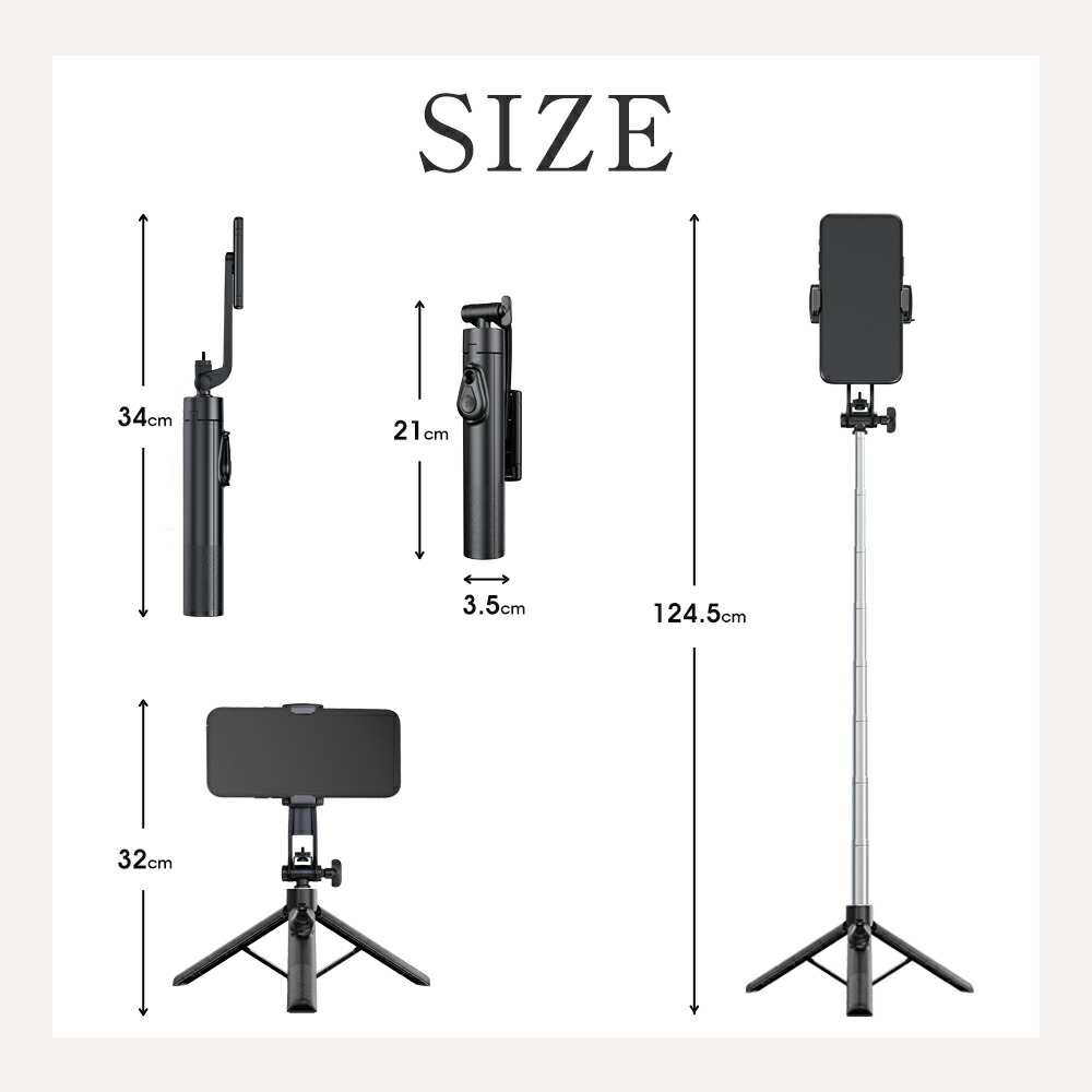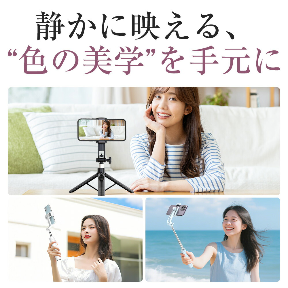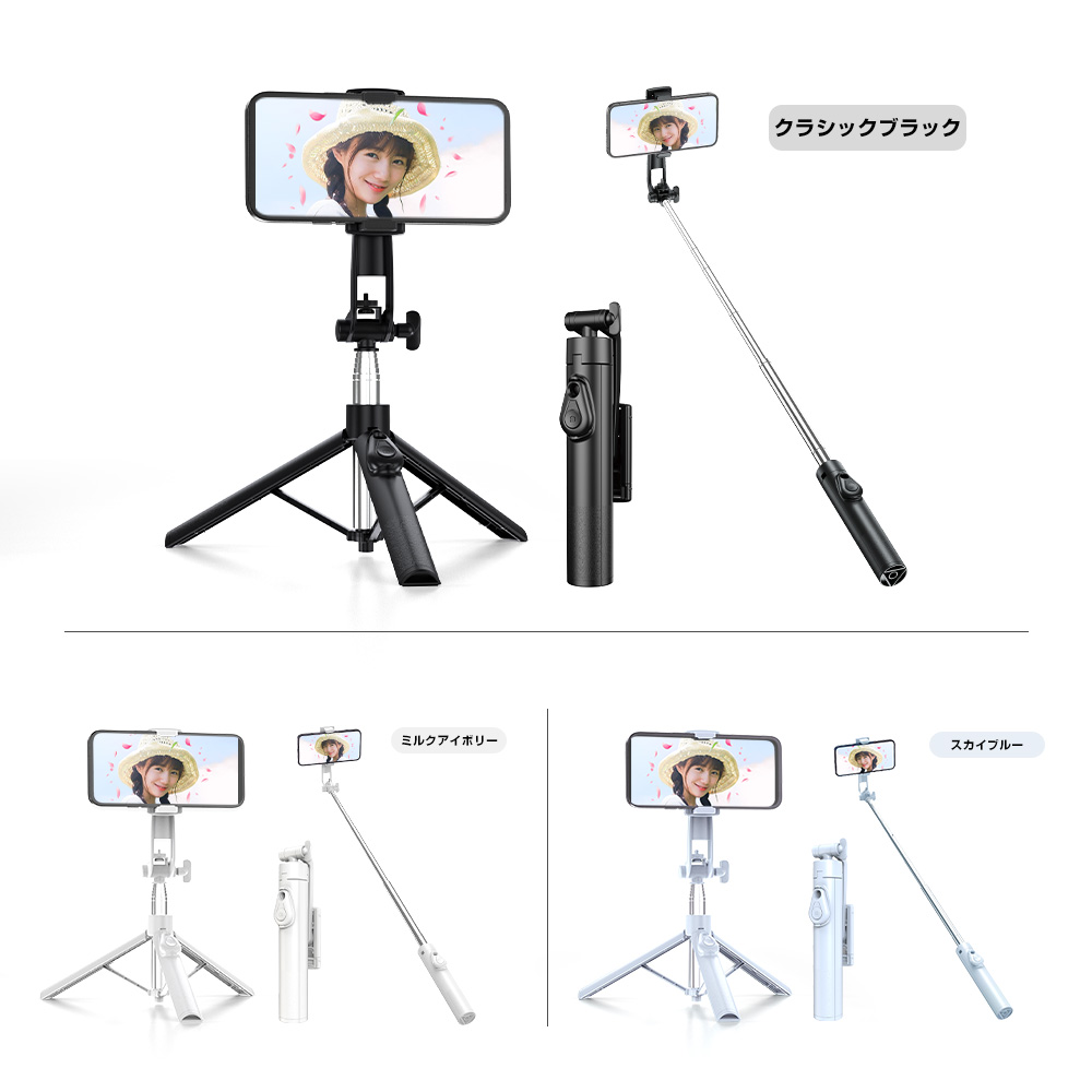 自撮り棒 三脚 ミニ自撮り棒、伸縮棒、 スマートフォン 携帯電話用アクセサリー セルカ棒 特集 クラシックブラック ミルクアイボリー スカイブルー