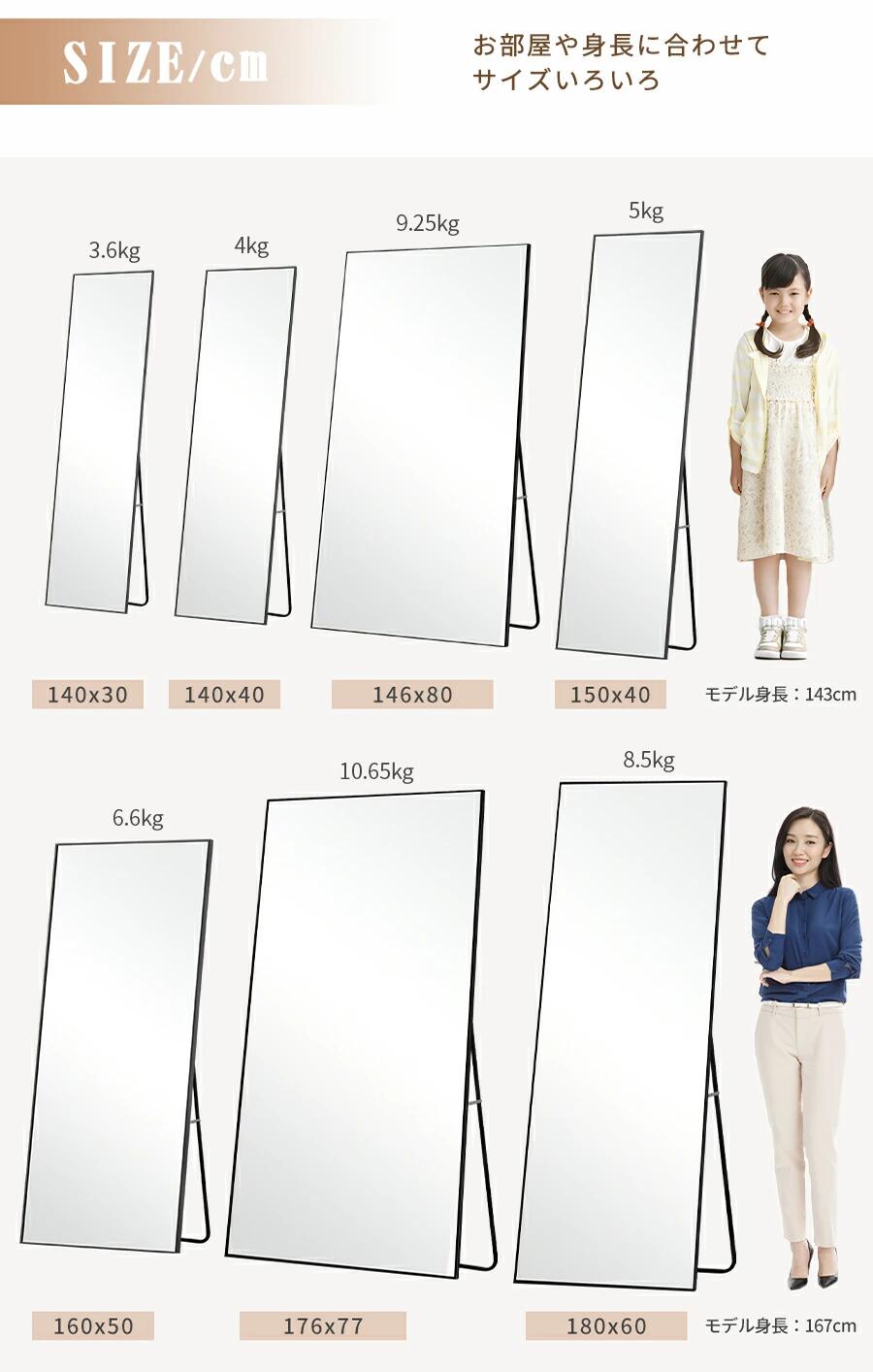 全身鏡 スタンドミラー 鏡 姿見 壁掛 150x40 160x50 180x60 176x77 146x80 140x40 140x30 120×30 ブラック シルバー ホワイト ゴールド