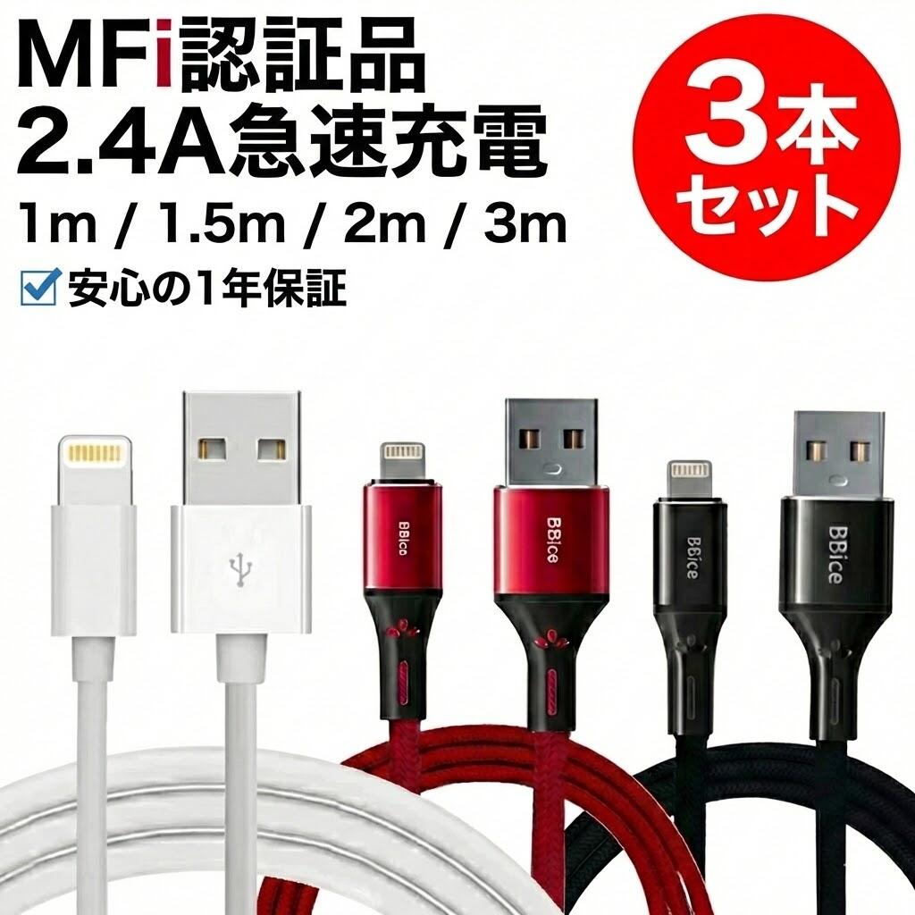 iPhone 充電ケーブル ケーブル スマートフォン タブレット用ケーブル 変換アダプター 早い者勝ち MFi認証 ホワイト 1m 3本 MFi認証 ホワイト 1.5m 3本 MFi認証 ホワイト 2m 3本 MFi認証 ホワイト 1m+1.5m+2m 3本 MFi認証-レッド 2m+3m+3m 3本