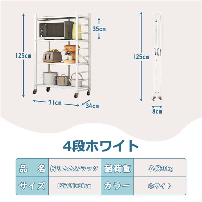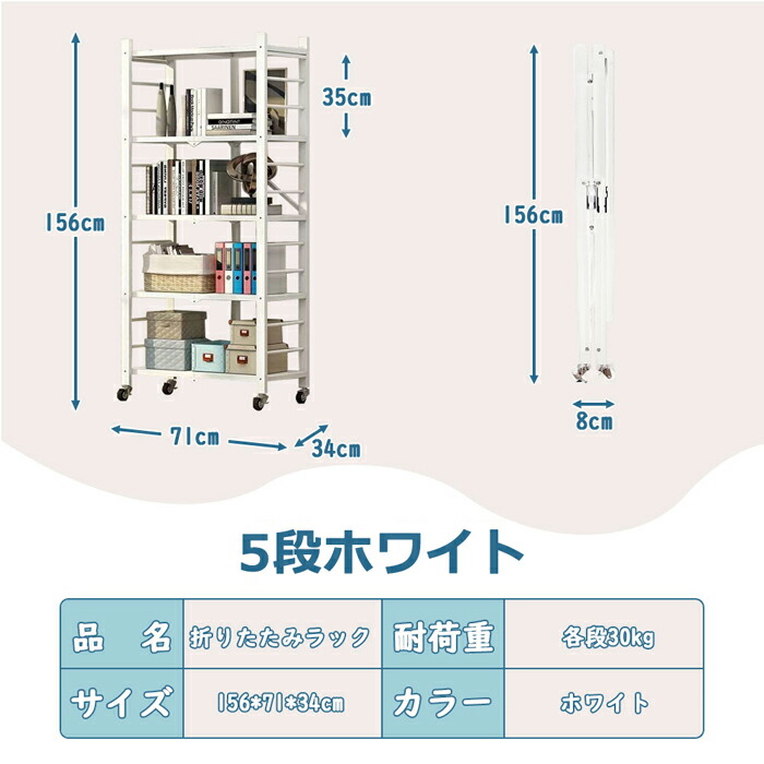 スチールラック 折りたたみ 収納ラック 四段 五段 ホワイト ブラック