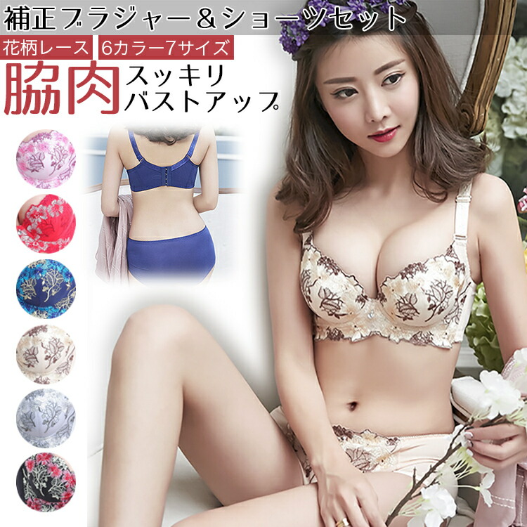 脇肉すっきり 補正ブラ ブラジャー&シ レディース インナー 下着 ブラジャー 通販 ピンク レッド ブルー ベージュ グレー ブラック 70AB 75AB 75CD 80AB 80CD 85AB 85CD