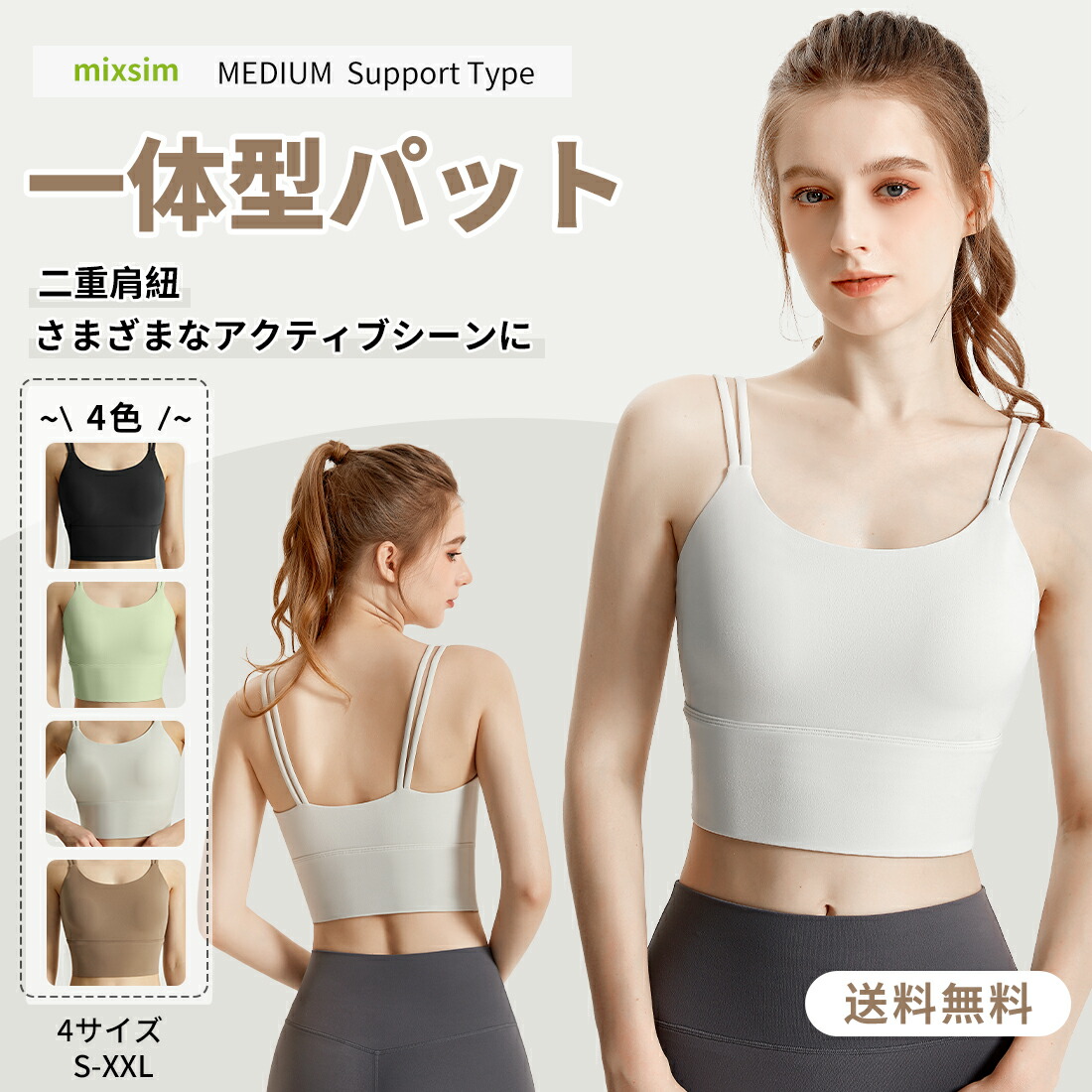 揺れない ブラジャー スポーツブラ ノ スポーツ アウトドア 通販 S M L XL XXL ホワイト コーヒー ブラック グリーン