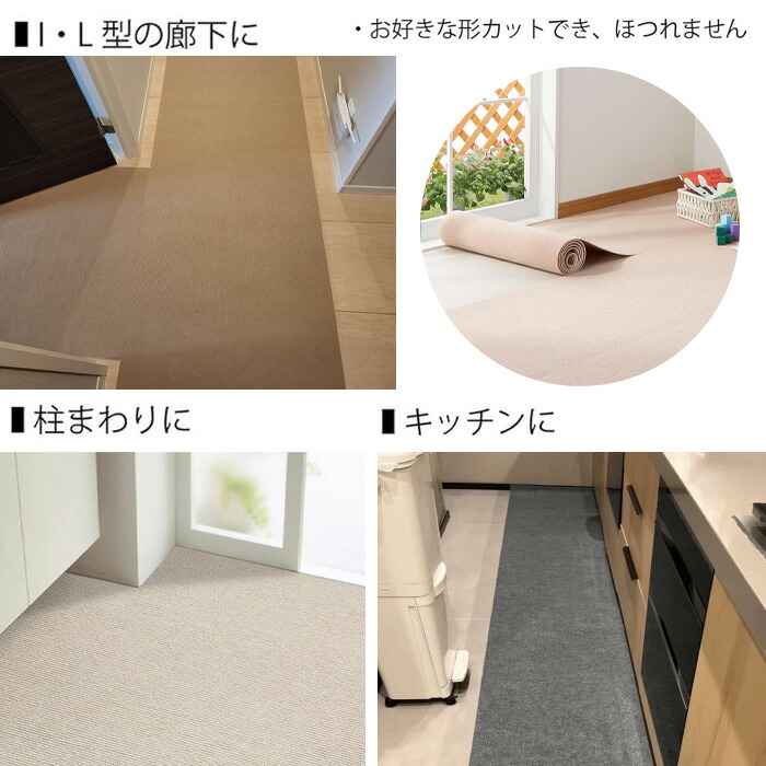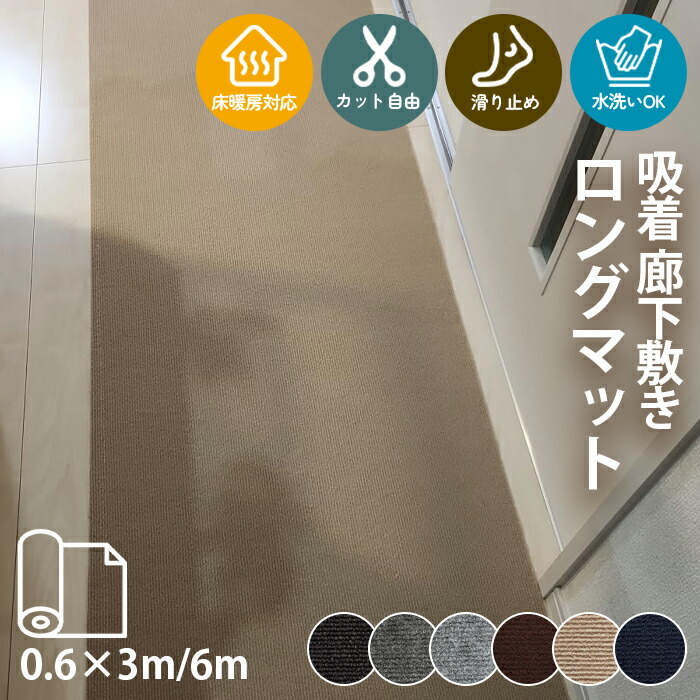 廊下 ロングカーペット 大判サイズ 滑 60×300cm 60×600cm ライトグレー ダークグレー ブラウン ブラック ベージュピンク ネイビー
