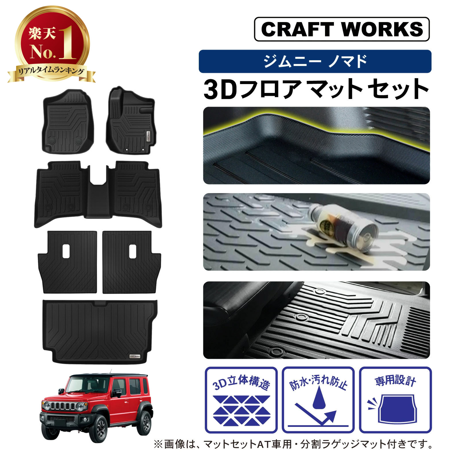 スズキ ジムニー ノマド 5ドア JC フロアマット ラゲッジマット 分割ラゲッジマット マットセット(分割ラゲッジなし) マットセット(分割ラゲッジ付き) AT車 MT車 AT・MT車共通