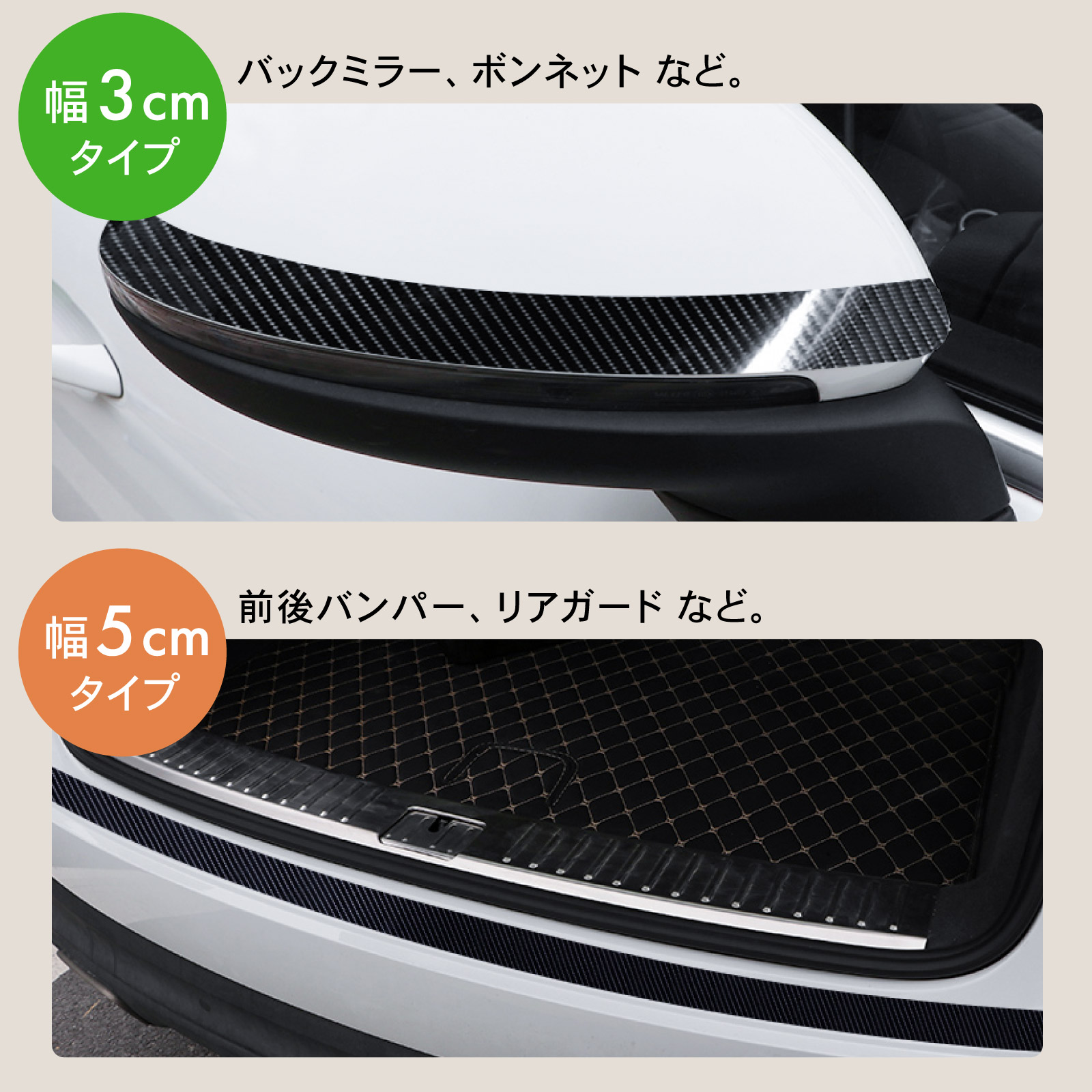 ・幅5cmタイプ:前後バンパー、リアガード、など。