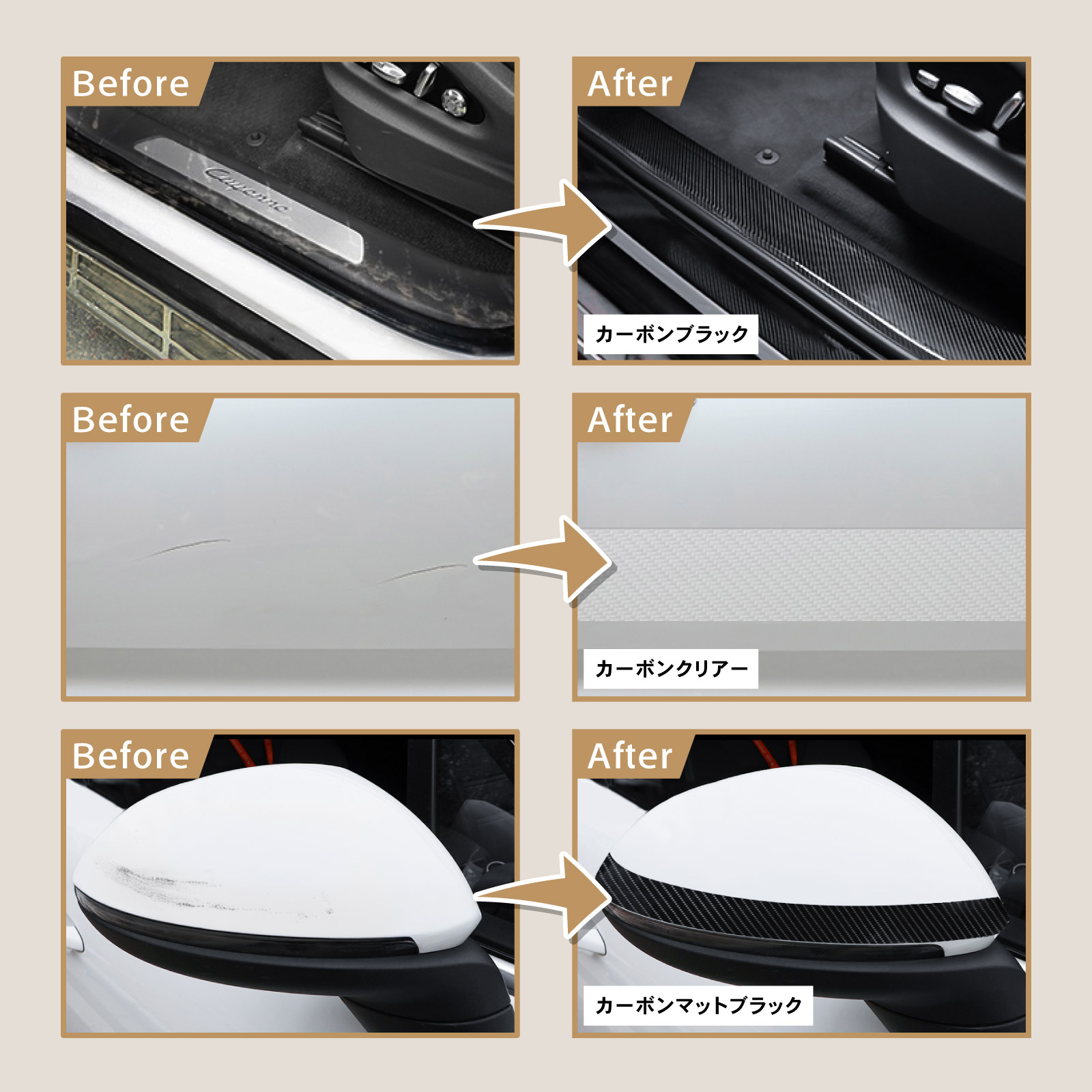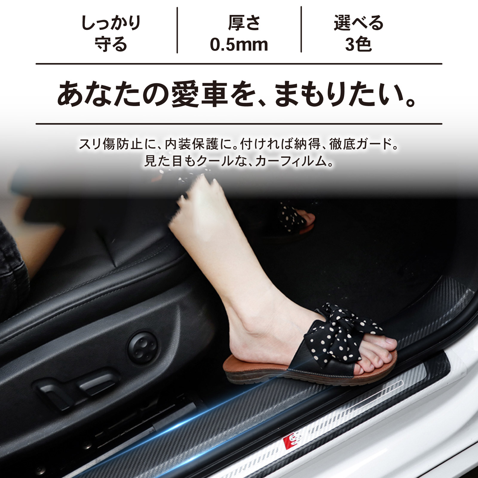 ドレスアップも最適な、選べる3色。カー保護フィルム。