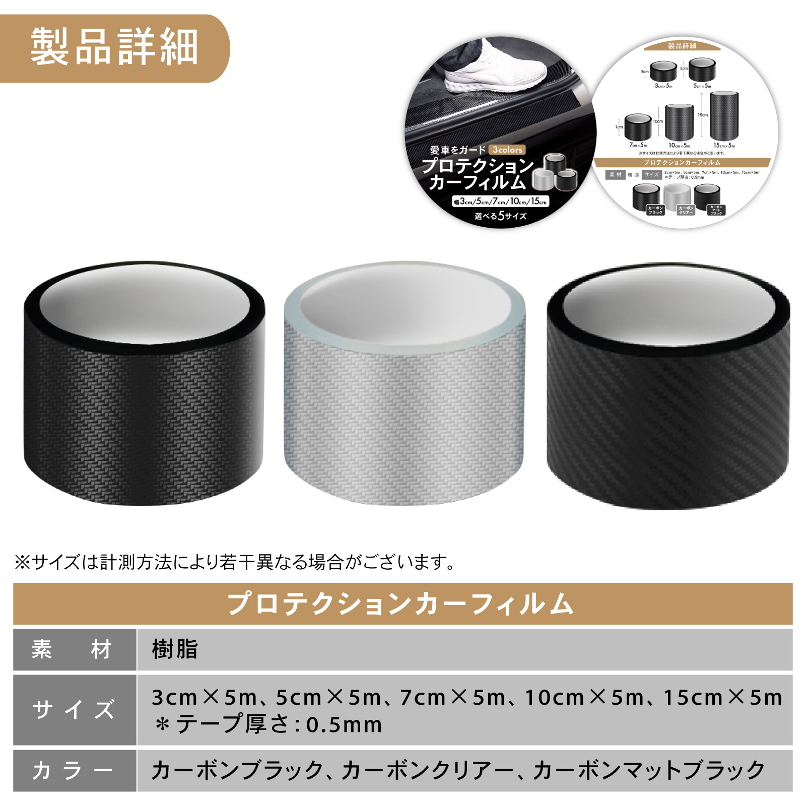[選べる3色 5サイズ] プロテクショ カーボンブラック カーボンクリア カーボンマットブラック 幅3cm×5m 幅5cm×5m 幅7cm×5m 幅10cm×5m 幅15cm×5m