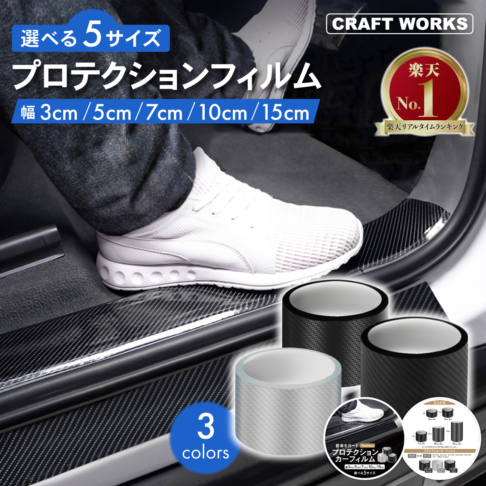 [選べる3色 5サイズ] プロテクションフィルム 3cm 5cm 7cm 10cm 15cm ドア スカッフプレート サイド ステップ カーフィルム モール 保護 車 傷 キズ ブラッ プロテクター