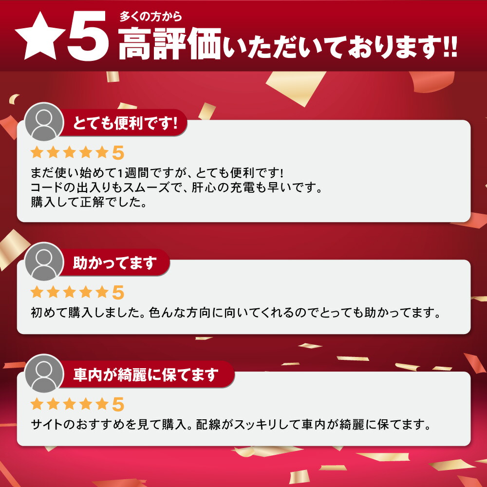 車内環境大幅向上。快適チャージ、カーチャージャー。
