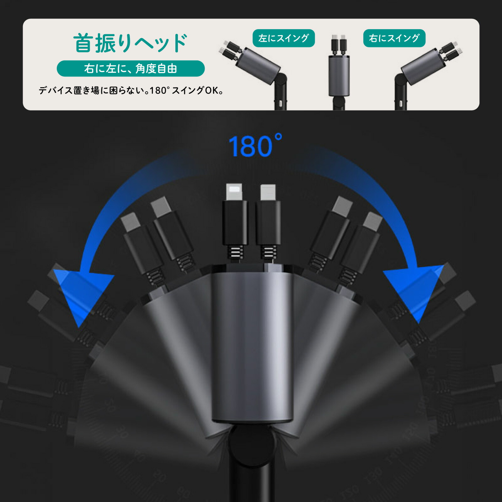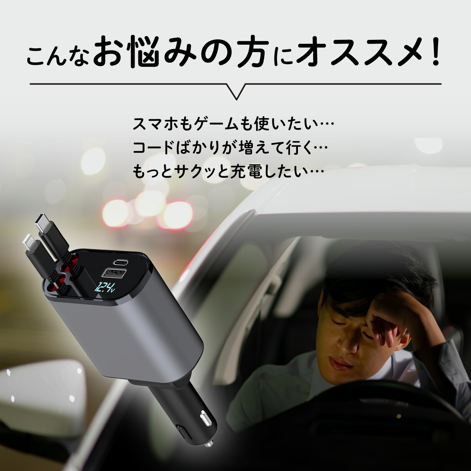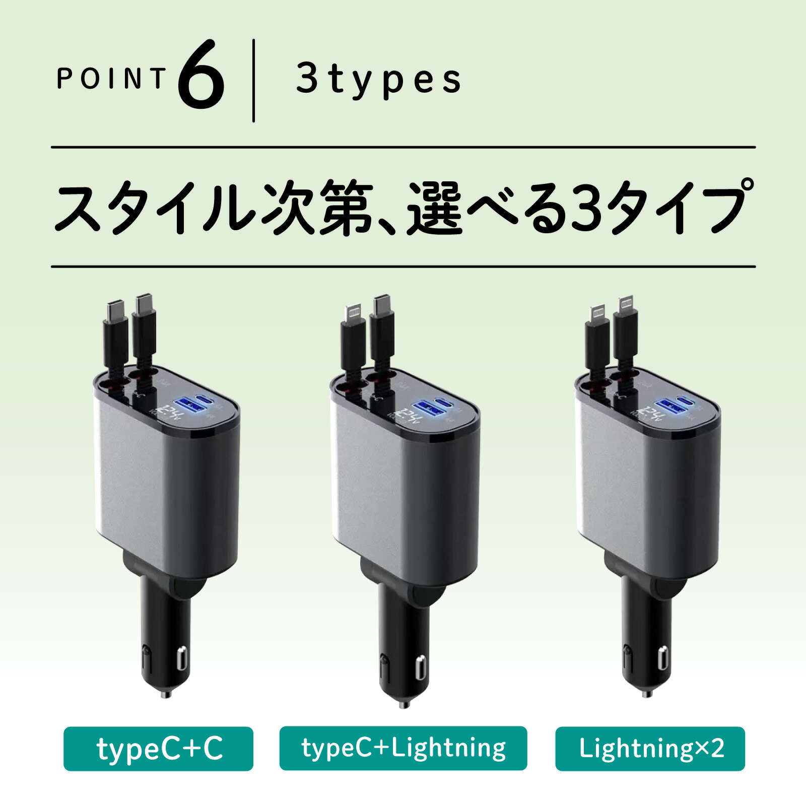 シガーソケット 充電器 巻き取り リール USB Lightning type-C