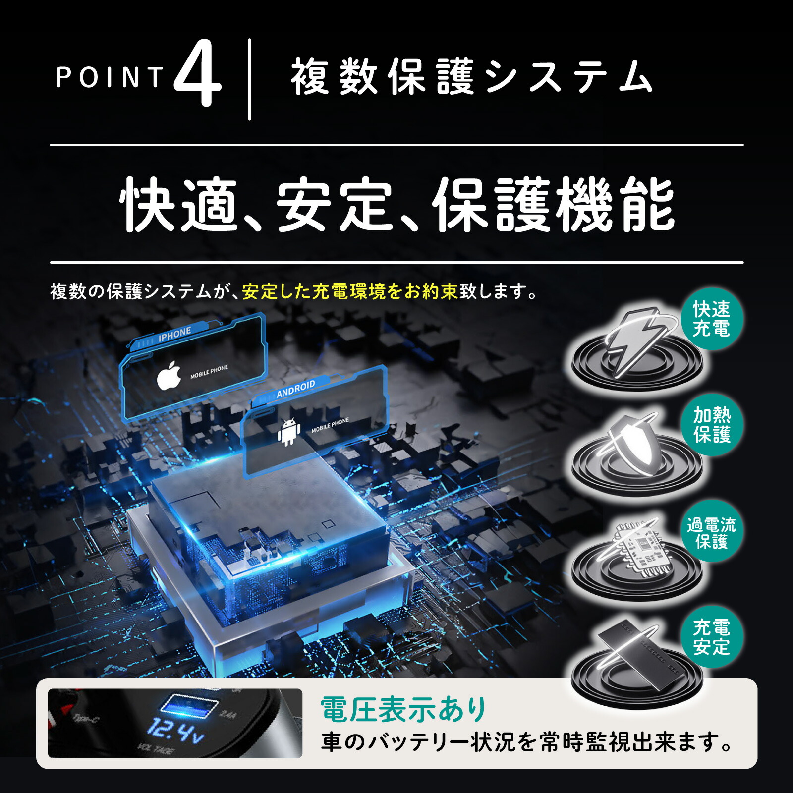 加熱保護、過電流保護等の複数の保護システムが、安定した充電環境をお約束します。