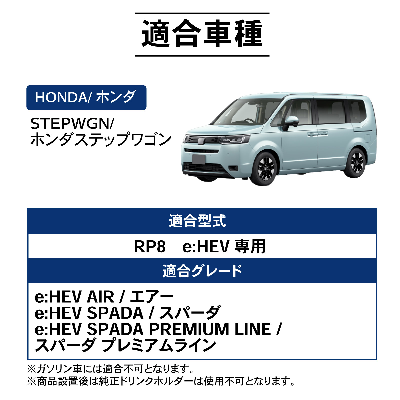 注意)ガソリン車には適合不可となります。