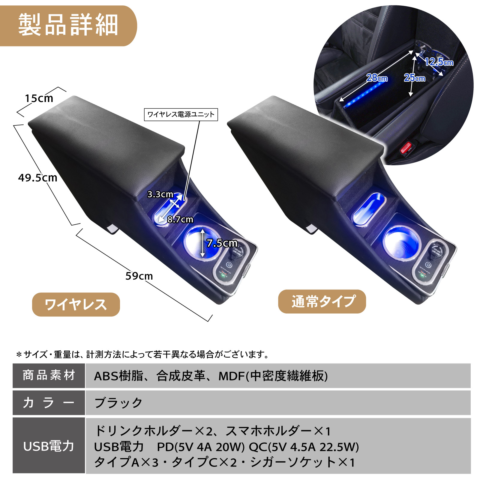 商品素材 ABS樹脂、合成皮革、MDF(中密度繊維板)