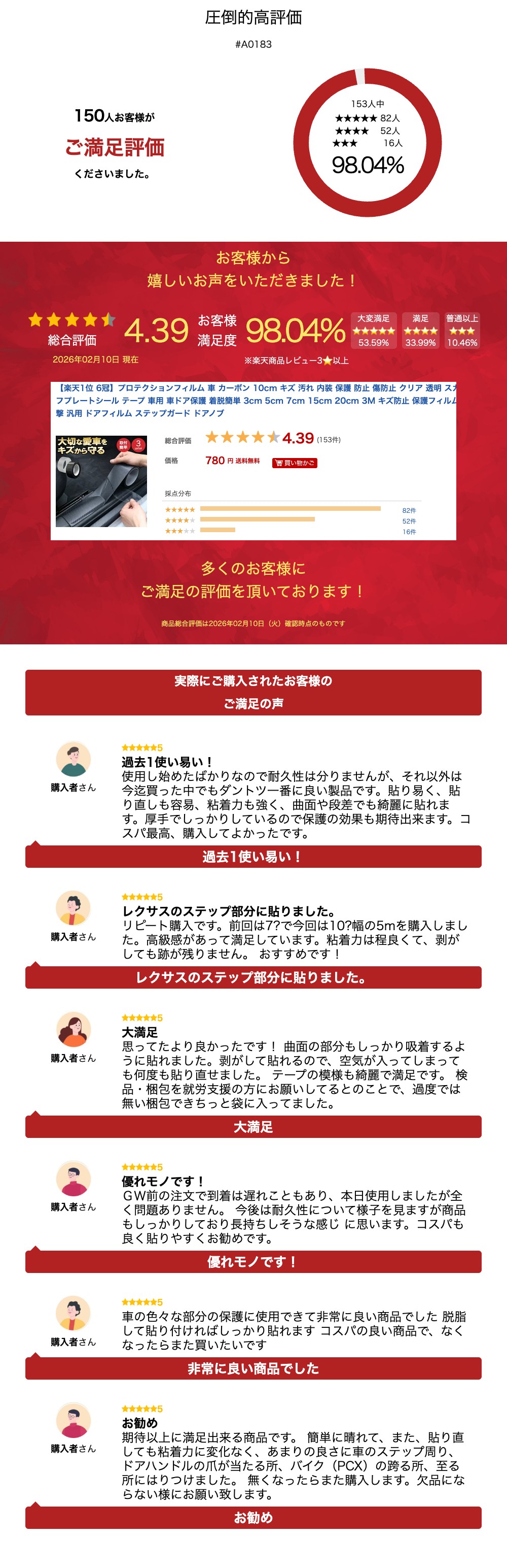 耐久性に優れたテープで、ドア・ボンネット・トランク・ミラーなど、