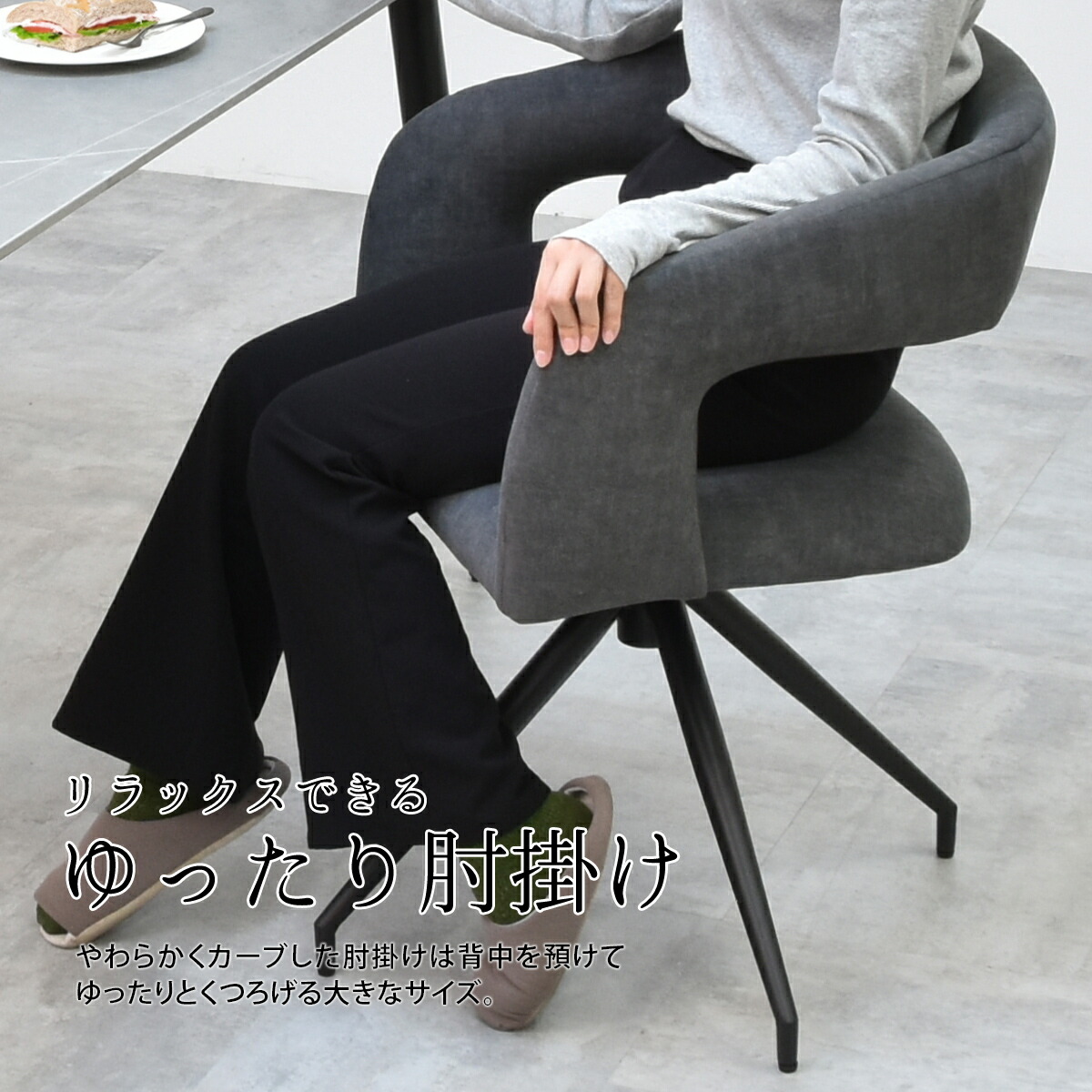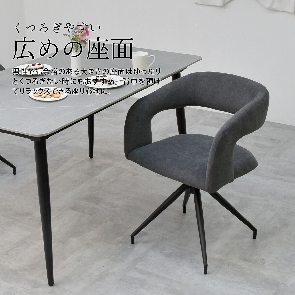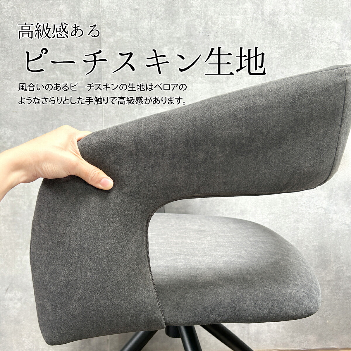 チェア チェアー イス ダイニング リビング キッチン カフェオレ ダークグレー ブラウン ブラック スチール ウレタン 書斎 カフェ アパレル ハウス グレー ベージュ コーヒー 休憩 掛置き かけられる 引っ掛け ピーチスキン サラサラ 手触り 滑らか やわらかい ウレタン 肘掛けあり 回転 回転式 らくらく 回る 立ちやすい 省スペース 上品 高見え