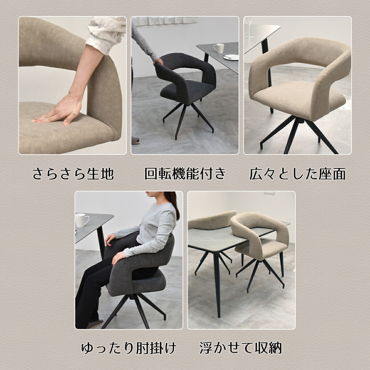 ダイニングチェア 回転 おしゃれ 1脚 【在庫】ベージュ 【在庫】グレー