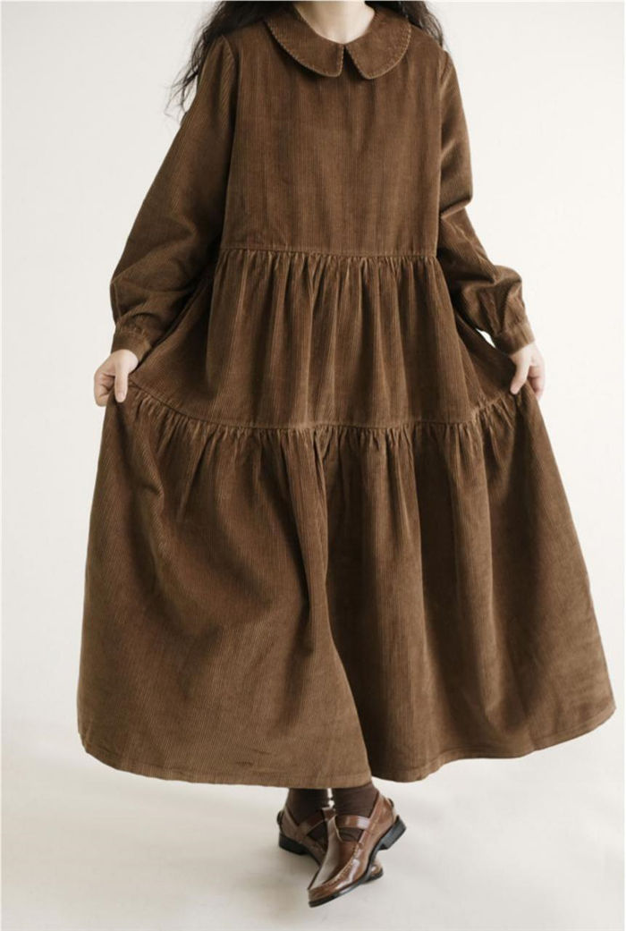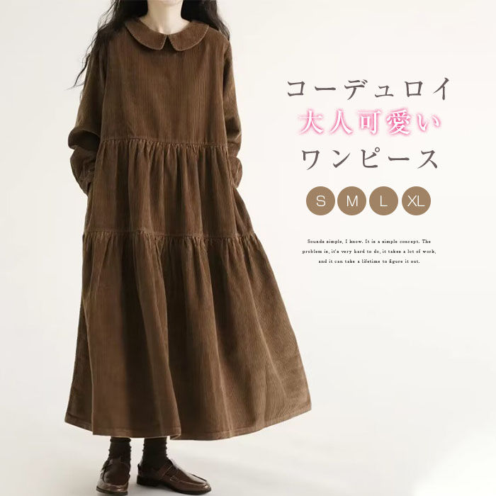 コーデュロイ ワンピース マキシワンピ ワンピース 続々登場 M L XL XXL