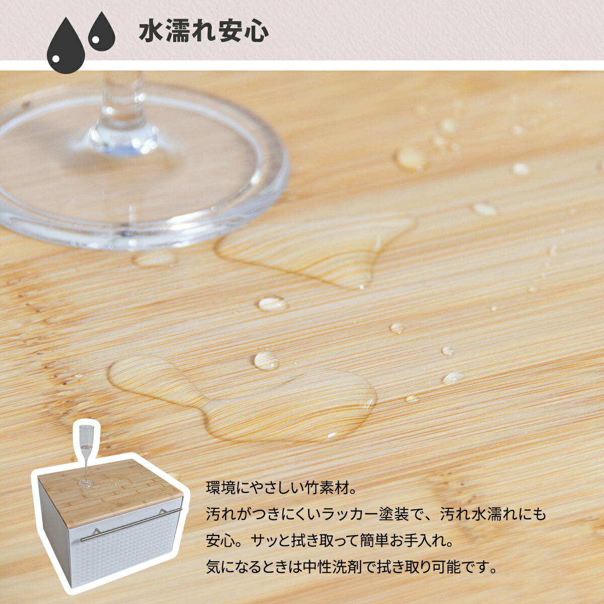 フラットなバンブーの天板は家電や物を置ける安心の耐荷重15kg。