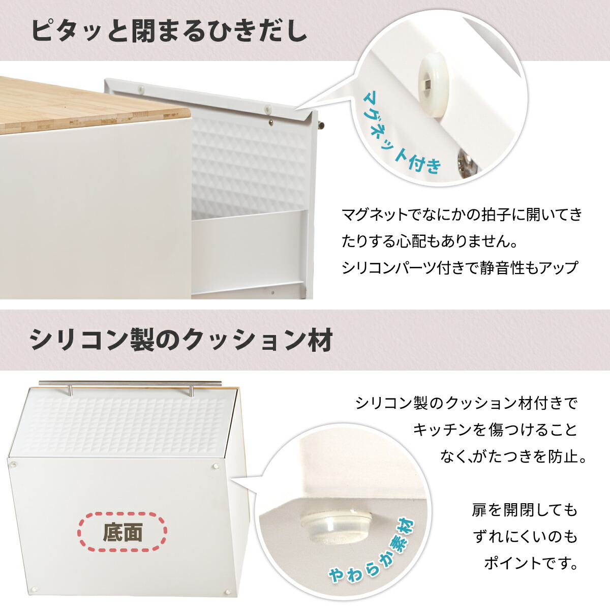 引き出しはステンレスの取っ手付きで、片手でも簡単に開閉可能。