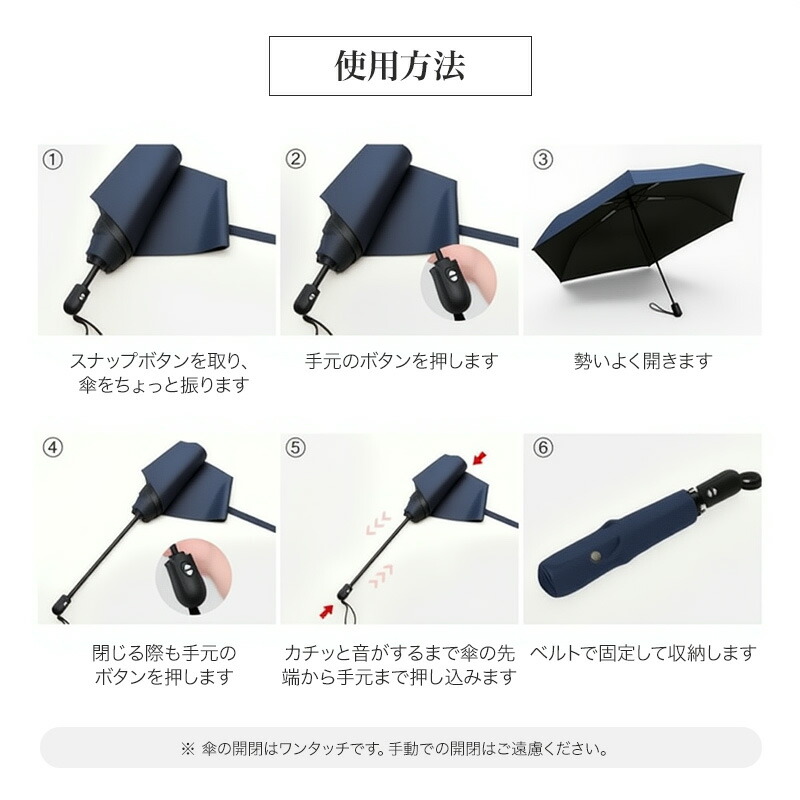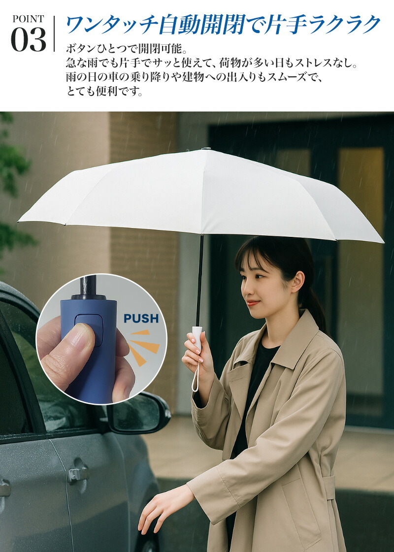 【自動開閉で片手でも簡単操作】ワンタッチで開閉できる自動開閉式。荷物が多い時や、電車の乗り降りなどでもストレスなく使えます。