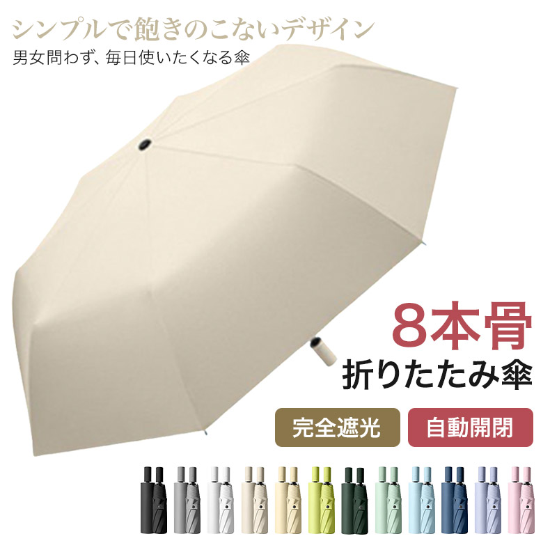 折り畳み傘 晴雨兼用 折りたたみ傘 8本骨 完全遮光 日傘 雨傘 自動開閉 ワンタッチ 遮光率100% 通年 uvカット 紫外線カット 遮光 遮熱 軽量 メンズ シンプル 無 レディース