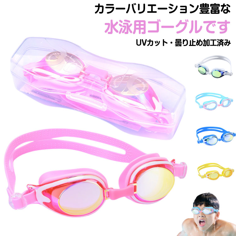 スイム ゴーグル 子供用 収納ケース付 ピンク01 ブルー01 ブルー02 イエロー ブルー03 ホワイト