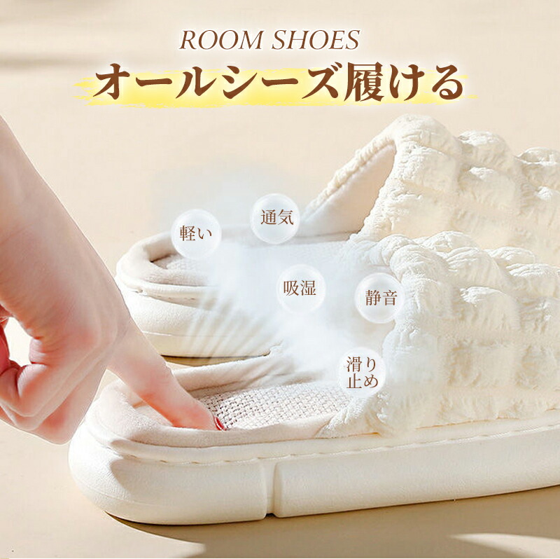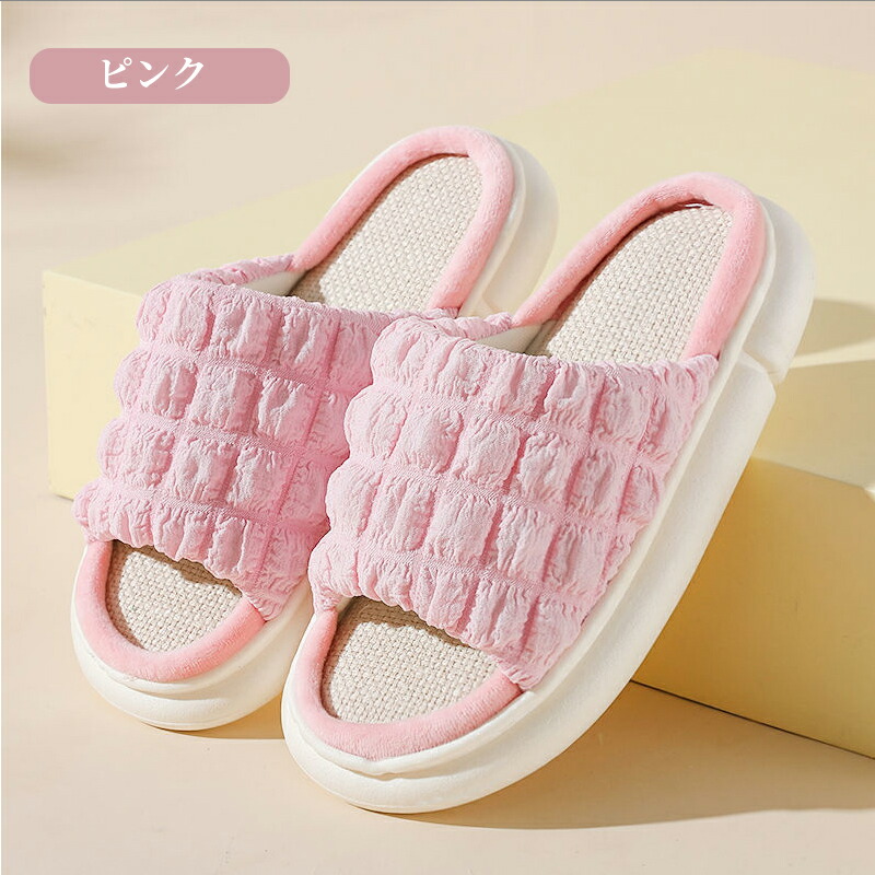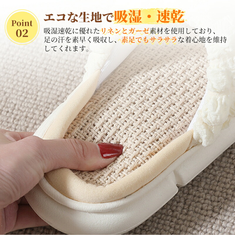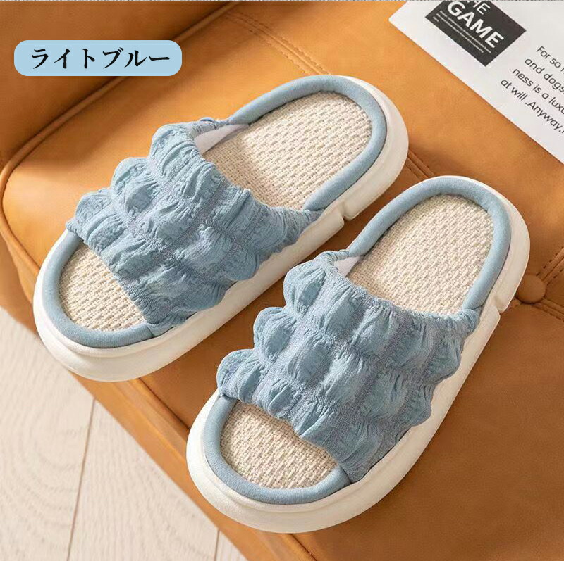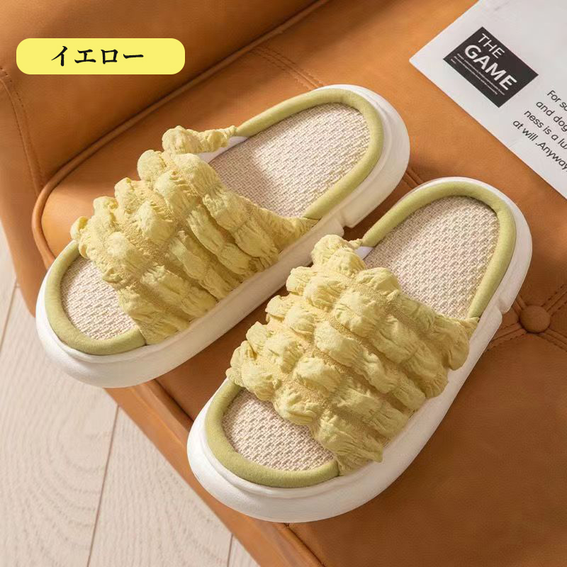 ルームシューズ ガーゼ かわいい 夏用 さらさら 吸湿 快適 リネン スリッパ 麻 3cm厚底 レディース EVA ソフト 柔らか 履き心地良い 滑り止め 静音 室内履き ルームサンダル リビ 洗える