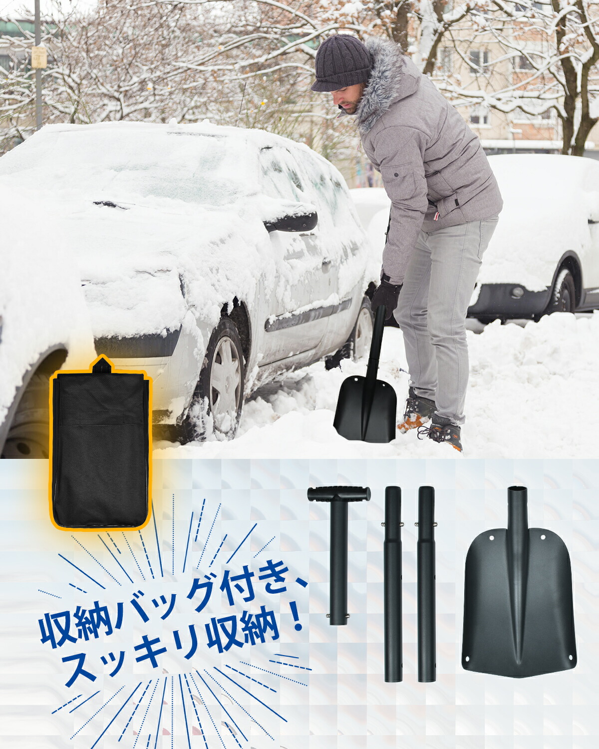スノーショベル*1、収納袋*1、日本語説明書*1。