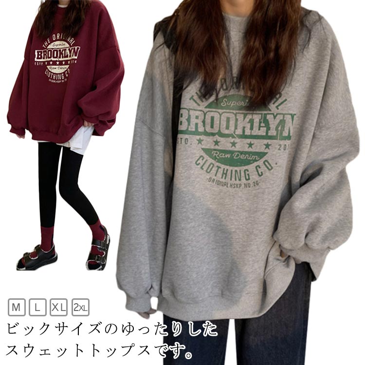 ロゴ スウェット トップス レディース レディースファッション 人気 グレー ワイン M L XL 2XL