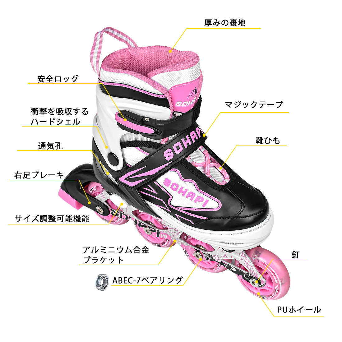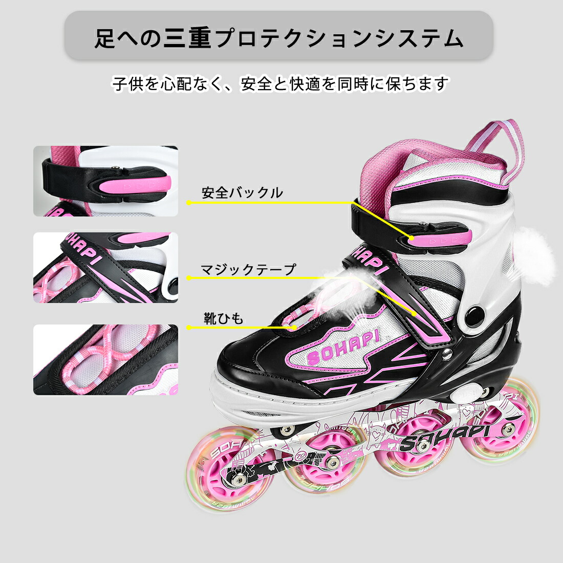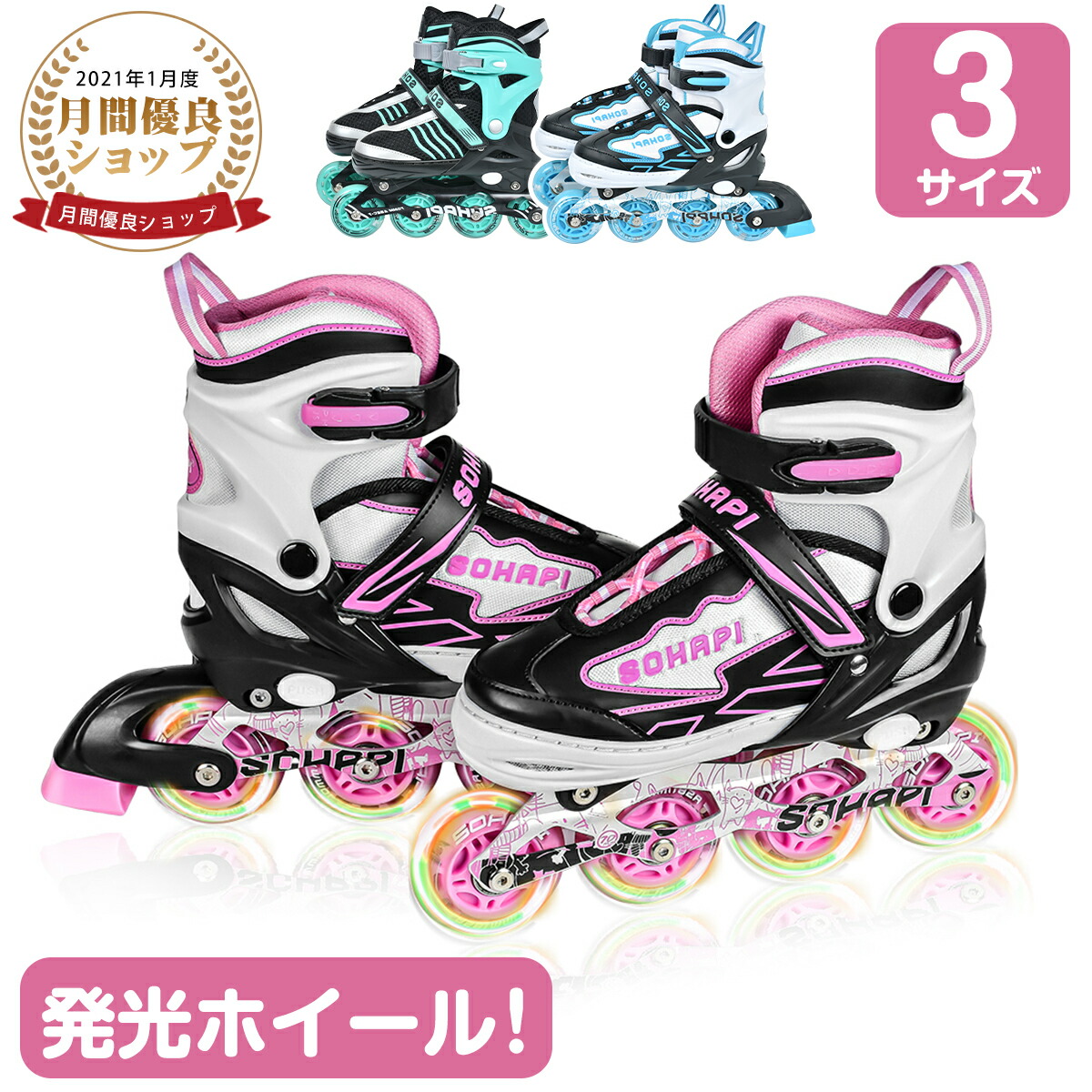 インラインスケート インラインシューズ スポーツ アウトドア 特集 S M L ピンク ライトブルー ミント ブラック