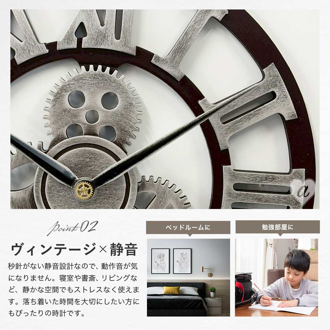 歯車 壁掛け時計 ローマ数字 アンティ シルバー ゴールド