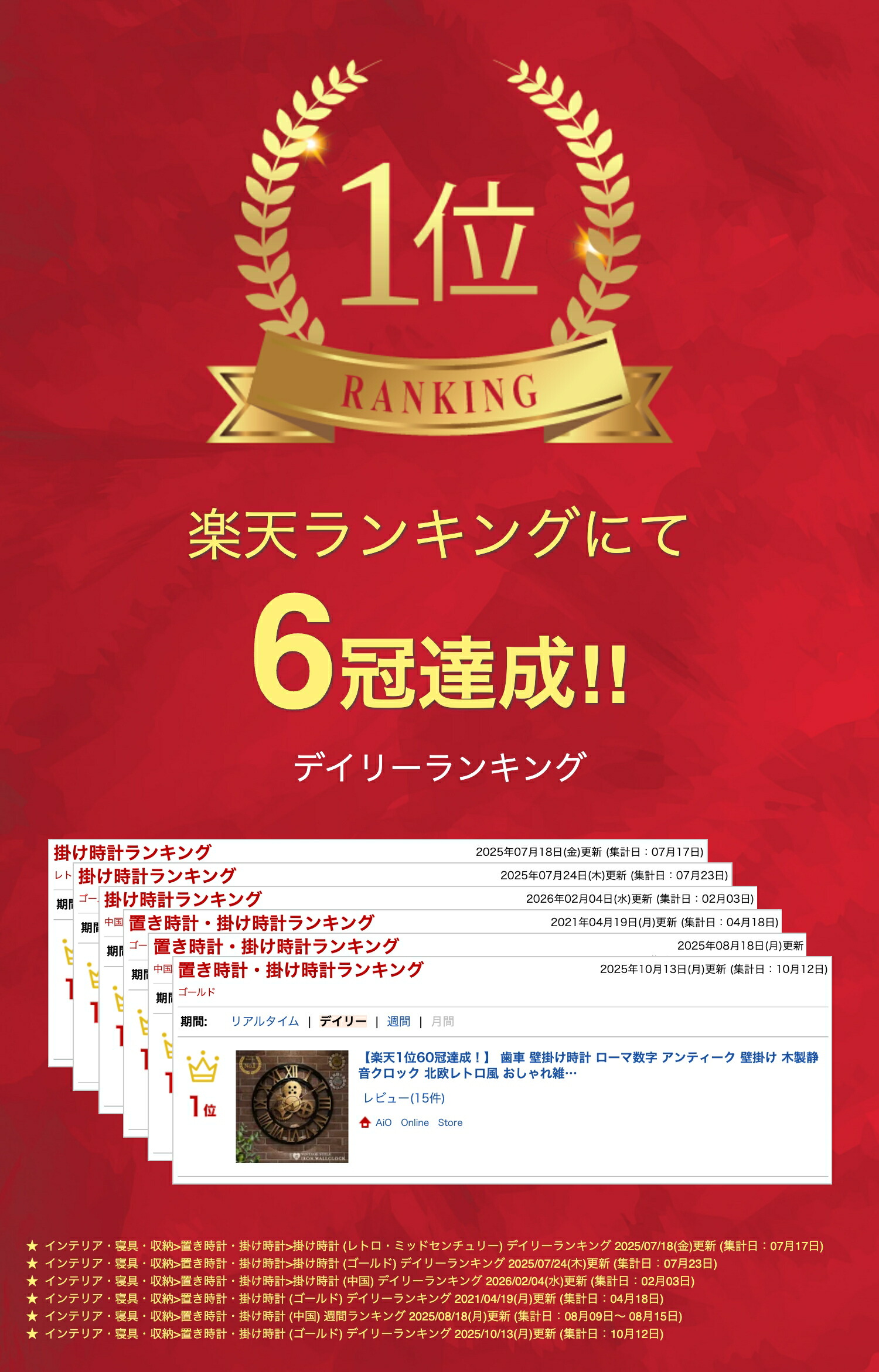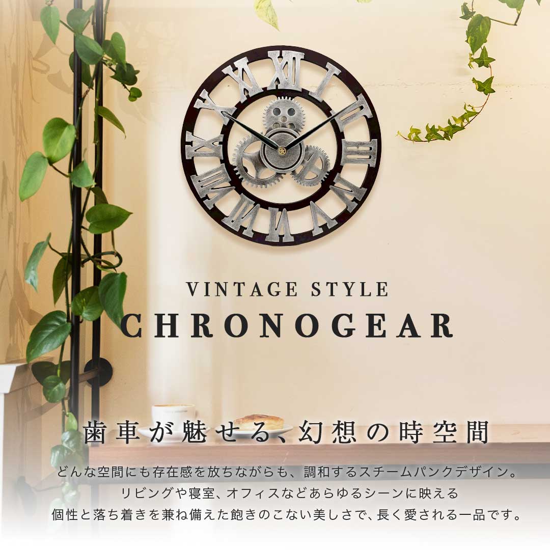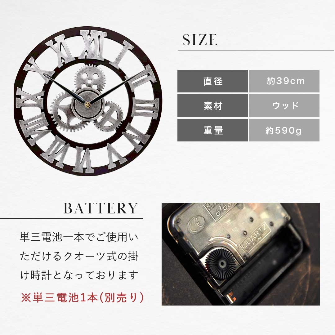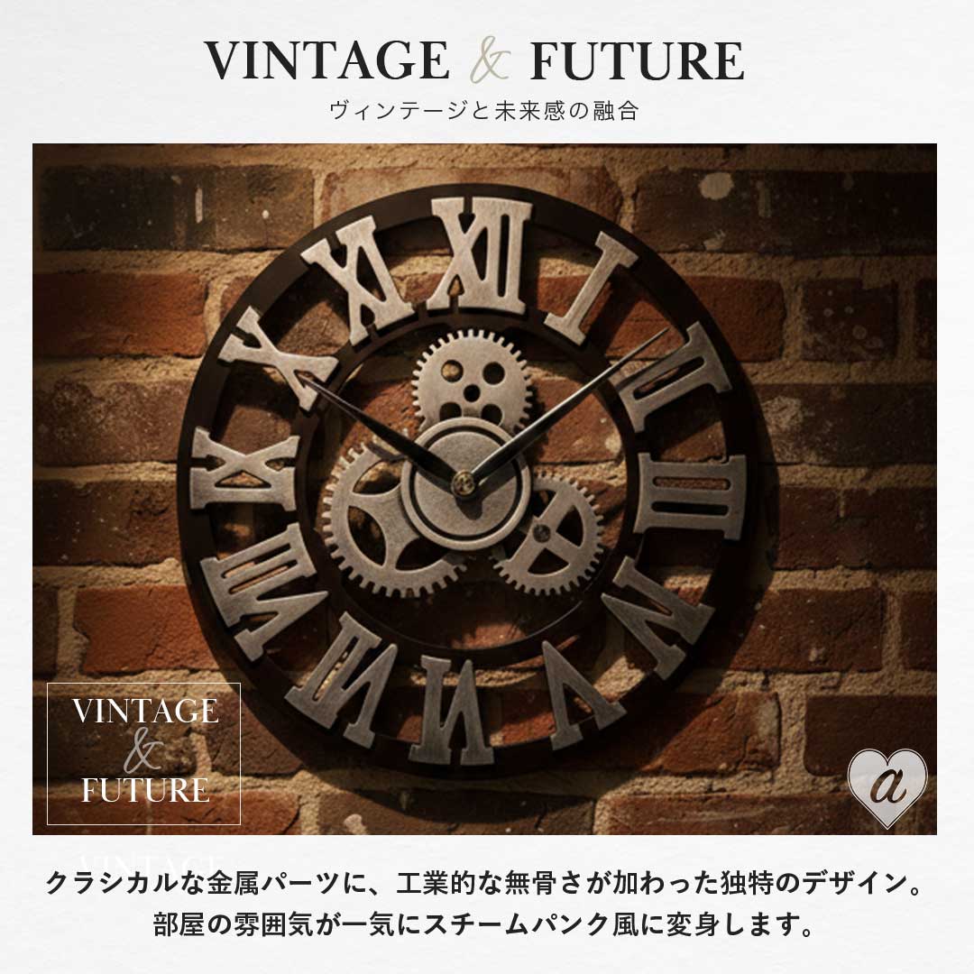歯車 壁掛け時計 ローマ数字 アンティーク 壁掛け 木製静音クロック 北欧レトロ風 おしゃれ雑貨 アメリカンモダン ウォールクロック 男前インテリア 欧風インテリア ギア デザイン時計 大きめ 静音
