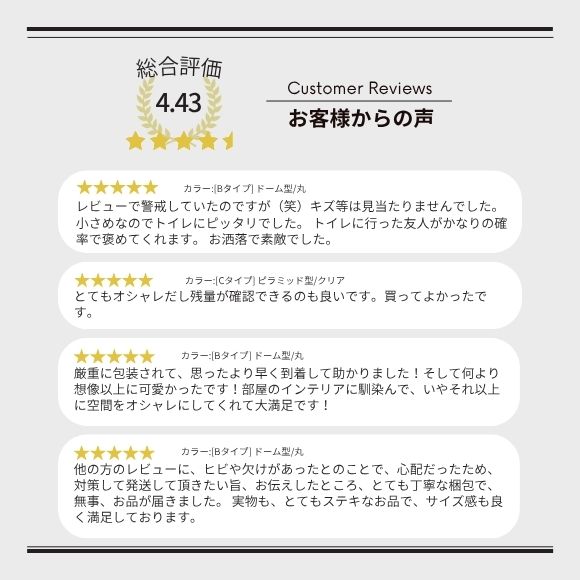 商品を実際にご使用いただいた感想や、サイズ感・色味などのレビューは