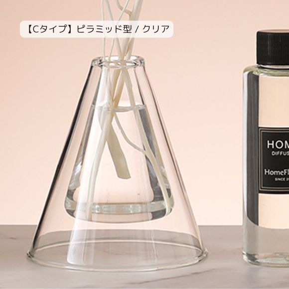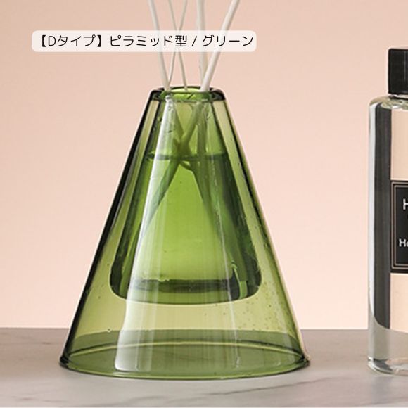 ディフューザーボトル ガラス製 詰め替 [Aタイプ] ドーム型/三角 [Bタイプ] ドーム型/丸 [Cタイプ] ピラミッド型/クリア [Dタイプ] ピラミッド型/グリーン
