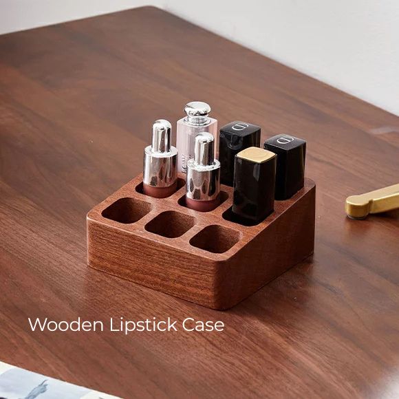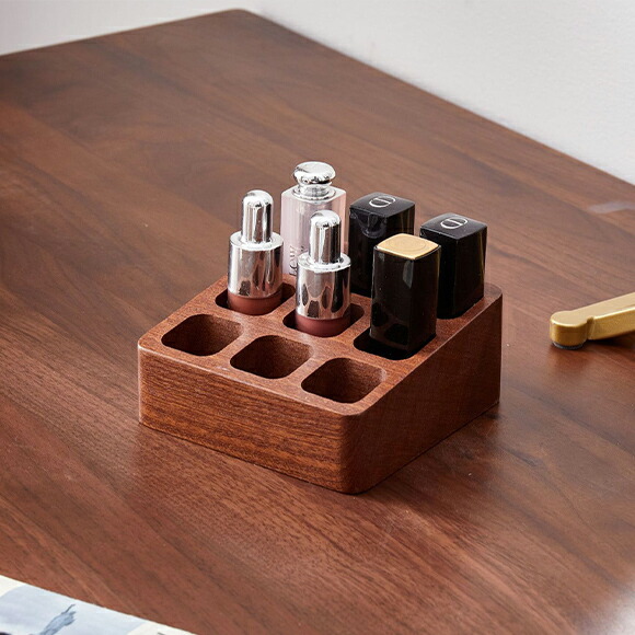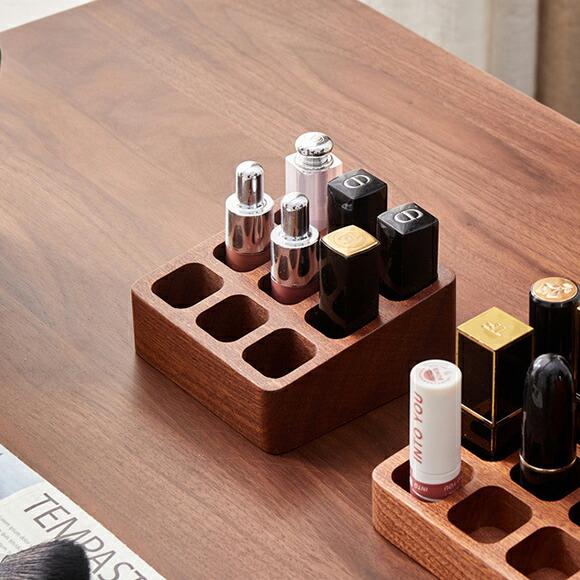 ナチュラル可愛いで魅せる収納、ウッド素材のリップケース。ミニマルでナチュラルなデザインで、置くだけでおしゃれな雰囲気に。