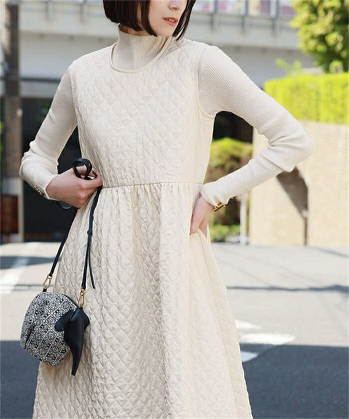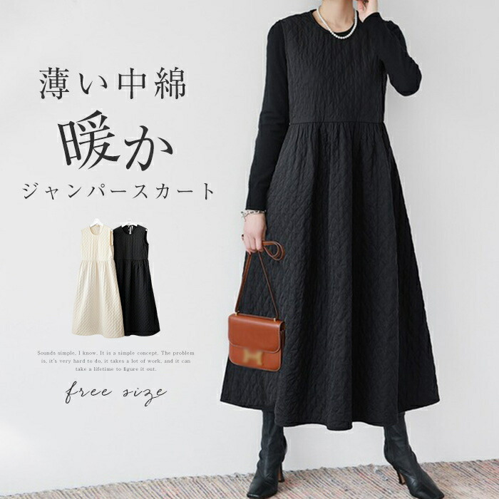 ジャンパースカート 中綿 ワンピース ホワイト ブラック