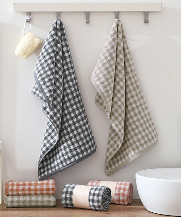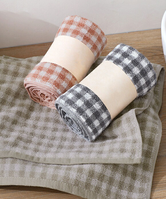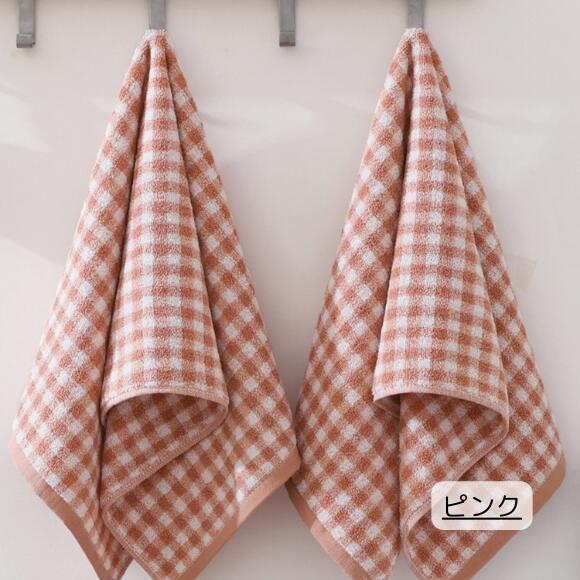 タオル フェイスタオル ギンガムチェッ タオル フェイスタオル 続々入荷中 ダークグレー グレージュ ピンク