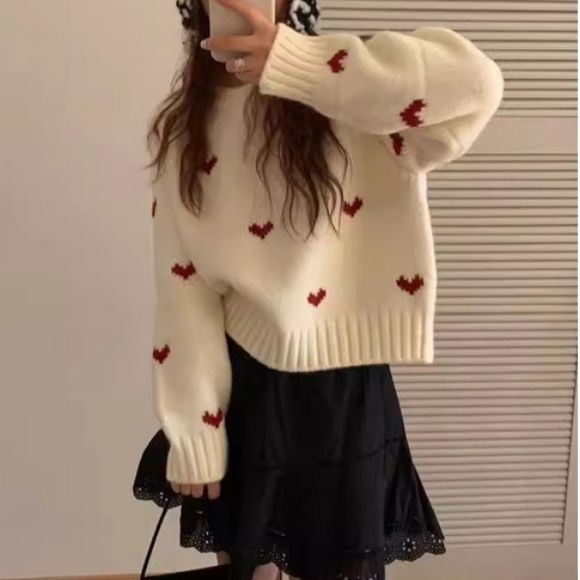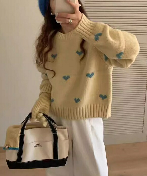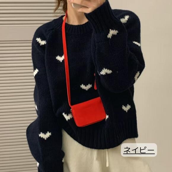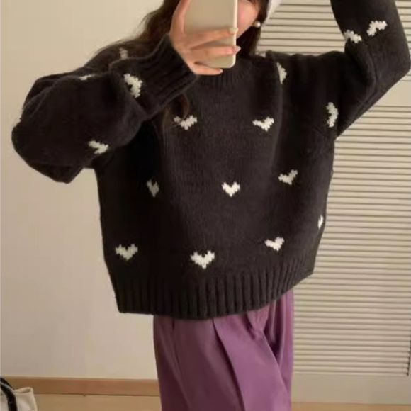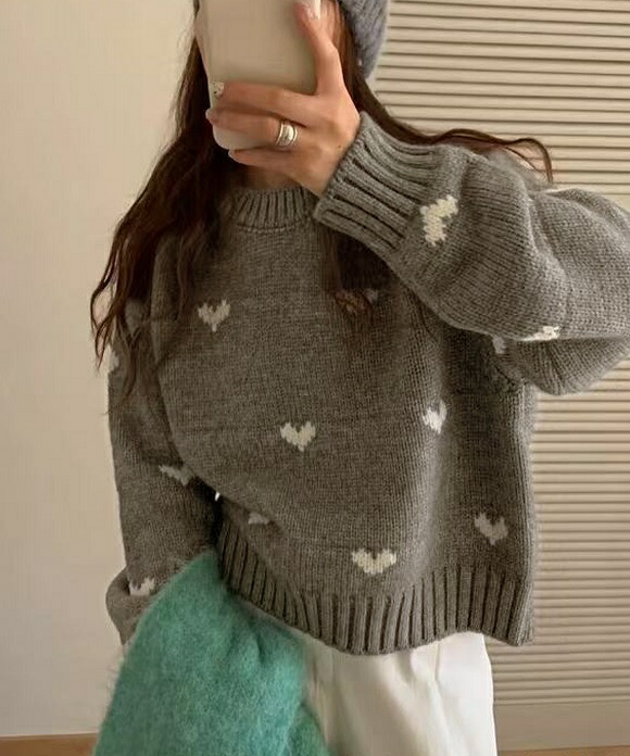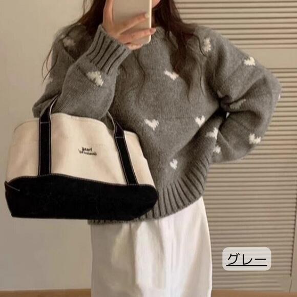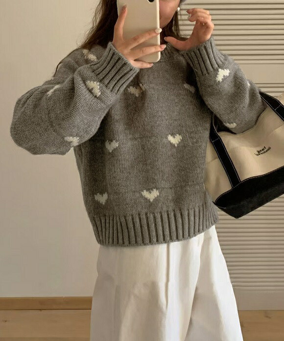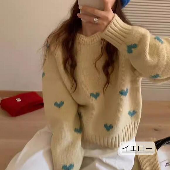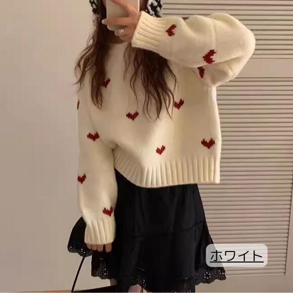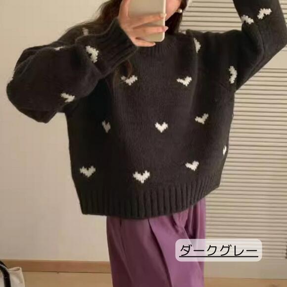 ニット セーター ハートニット ニットトップス プルオーバー ハート 柄 かわいい リブ 長袖 ルーズ 韓国 韓国ファッション 冬 秋服 冬服 オフィスカジュアル レトロ バレエコア レディ ガーリー