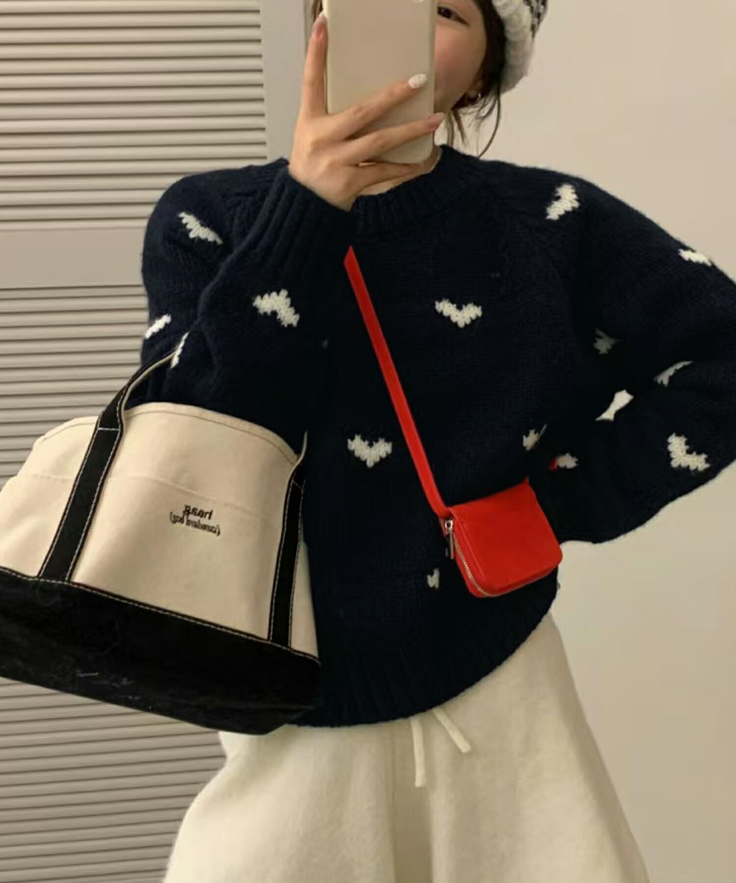 コーデの主役になるハート柄ニットを、あなたにも