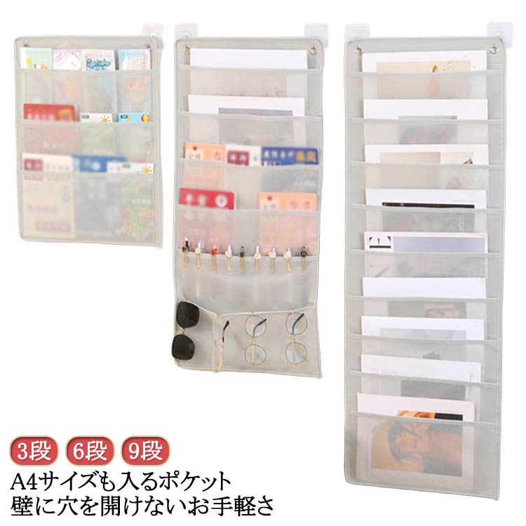 玄関 壁掛け収納ポケット 6段 ウォー グレー ベージュ 3段 6段 9段